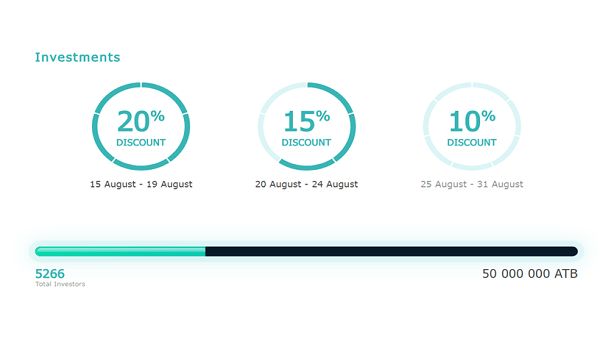 Купив ATB до 24 августа, вы может рассчитывать на плюс к балансу в 15% от суммы инвестиции и, приобретя токены ATB с 25 по 31 августа, вы прибавите сразу 10 %.