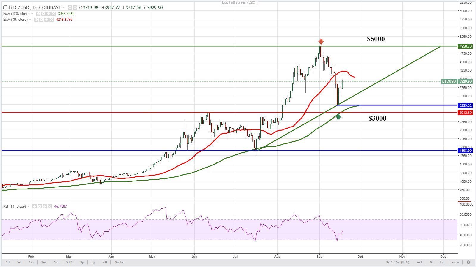 Таким образом, рынок четко определился с текущим ценовым диапазоном, где отметка $3000 является его нижней границей, а уровень $5000 верхней, при этом временно являясь историческим максимумом стоимости Bitcoin.