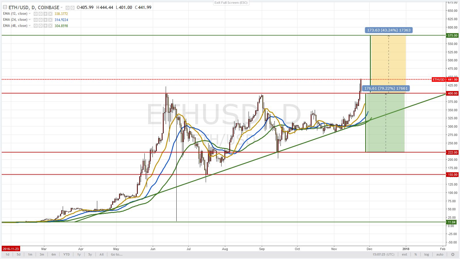 На сегодняшний день уже мало, что может остановить дальнейший рост Etehereum к прогнозному уровню $500, которого его цена может достичь быстрее, чем того ожидают аналитики с Уолл Стритт.