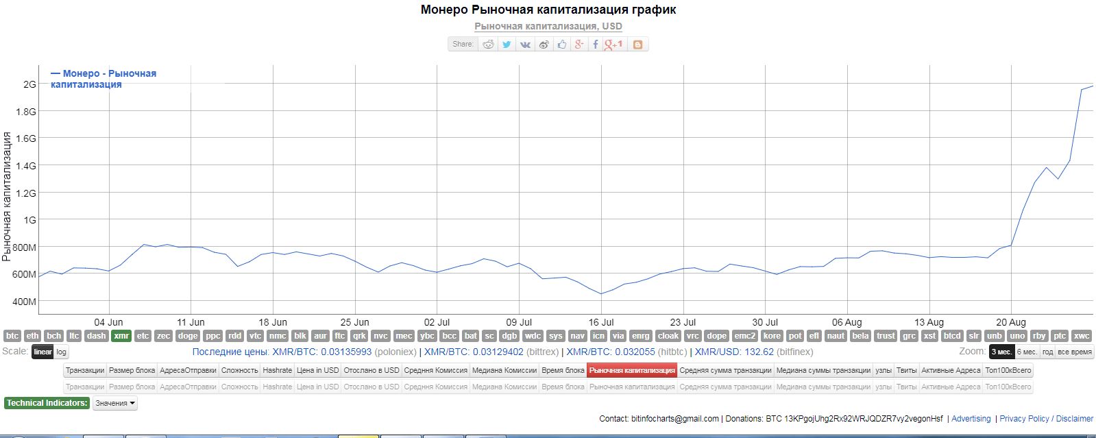 Таким образом, в период с 10 августа по 28 августа, криптовалюта Monero увеличила капитализацию рынка более, чем на 60 %.