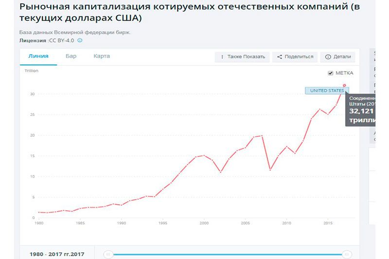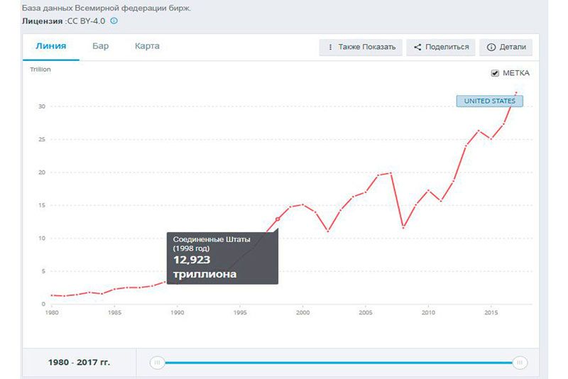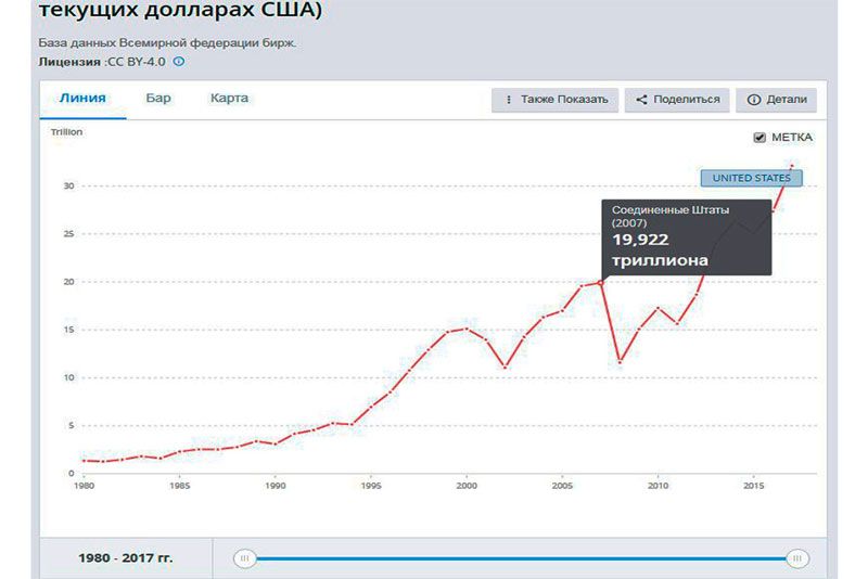 Но неизменным остается одно: стремительно восходящий тренд общего объема инвестиций в ведущие акции фондового рынка США, который достиг, согласно данным Мирового банка, уровня $32,13 трлн.