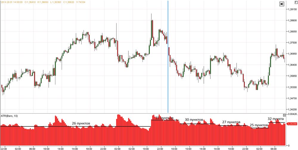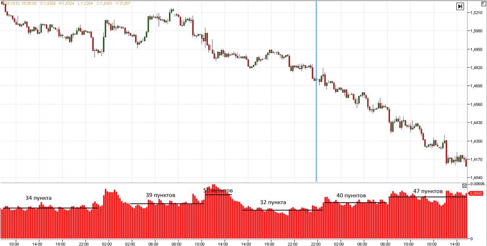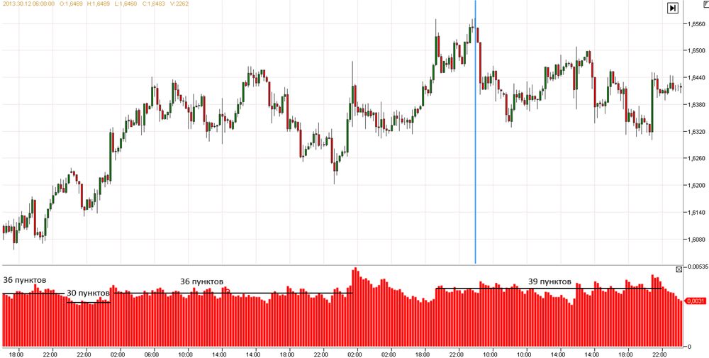Здесь так же, как и на евро/долларе, прослеживается динамика снижения волатильности в период нового года примерно на 30–50 %. Поэтому потенциал внутридневных краткосрочных сделок, скорее всего, не будет таким большим, как до снижения.