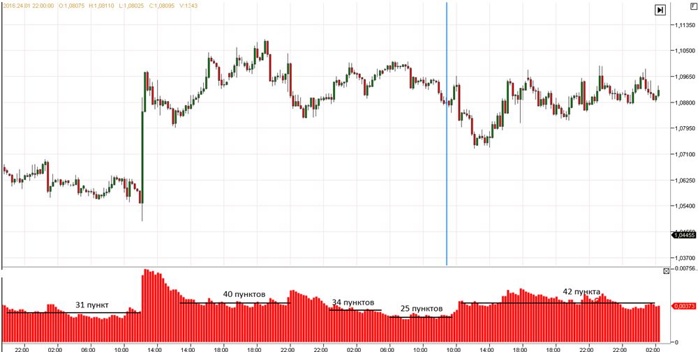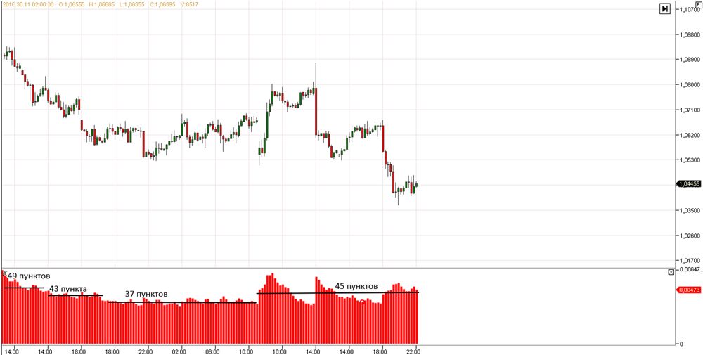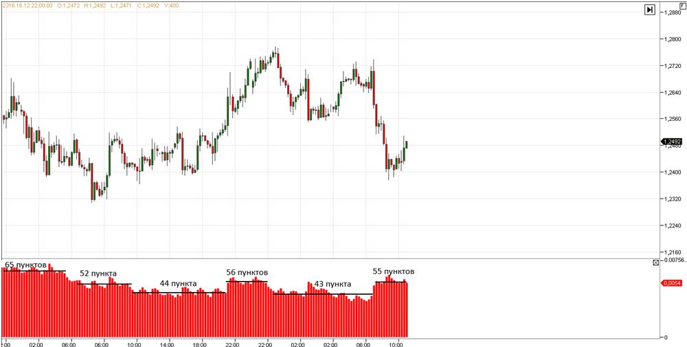 К примеру, средняя волатильность в последний месяц перед новым годом, выросла с 2013 по 2016, с 25 пунктов до 41 пункта в среднем, что составляет около 60 %. Такое повышение волатильности, естественно, может менять правила внутри дня для краткосрочных трейдеров, хотя бы потому, что увеличение волатильности предполагает увеличением рисков.
