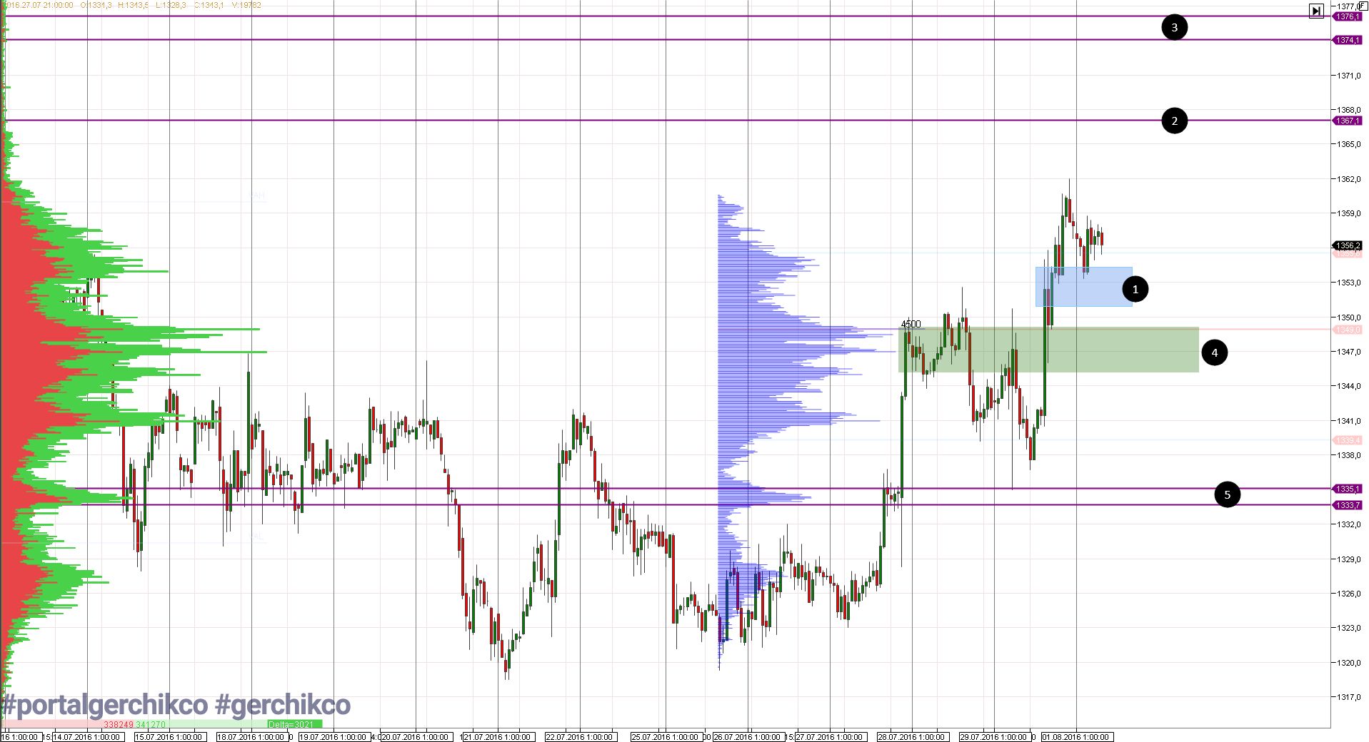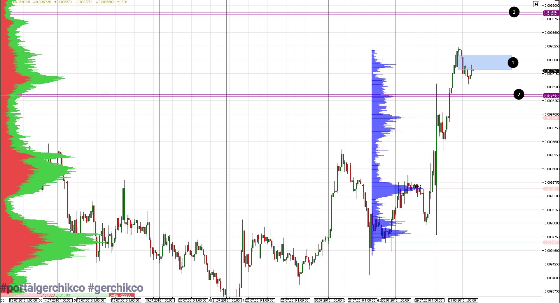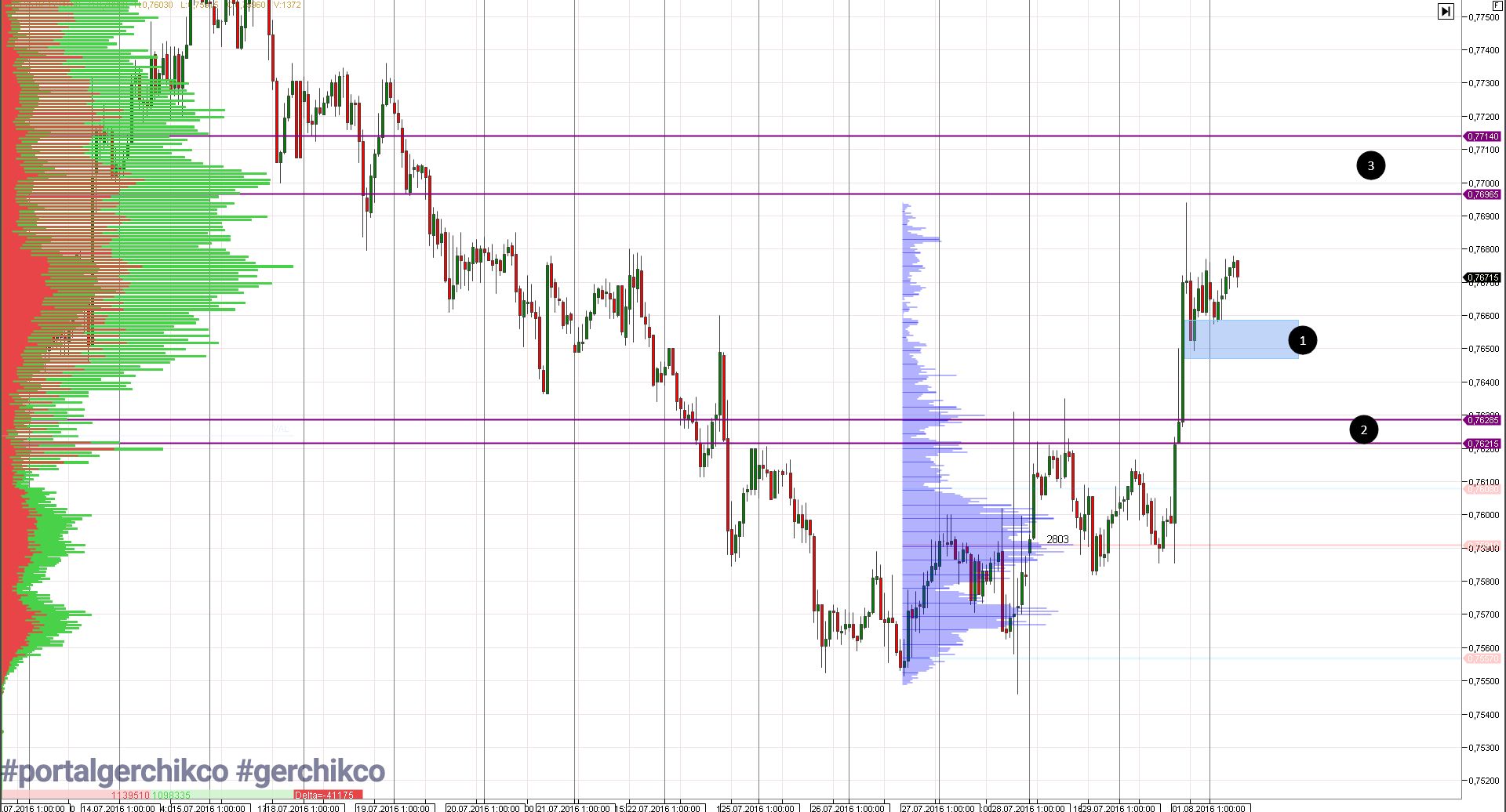 В случае пробоя зоны 1, продавцы столкнутся с объемом покупателя, где может находиться позиция покупателя. Продажи сейчас рискованные. Цель для покупок зона 2 и 3.