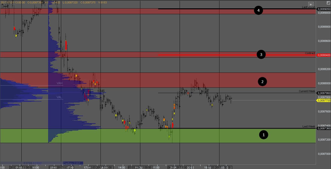 Фьючерс USD_JPYЙена тестировала в понедельник сопротивление 2, где был наторгован объем и продавец удержал котировку. Пока приоритет краткосрочные продажи к цели в зоне 1.