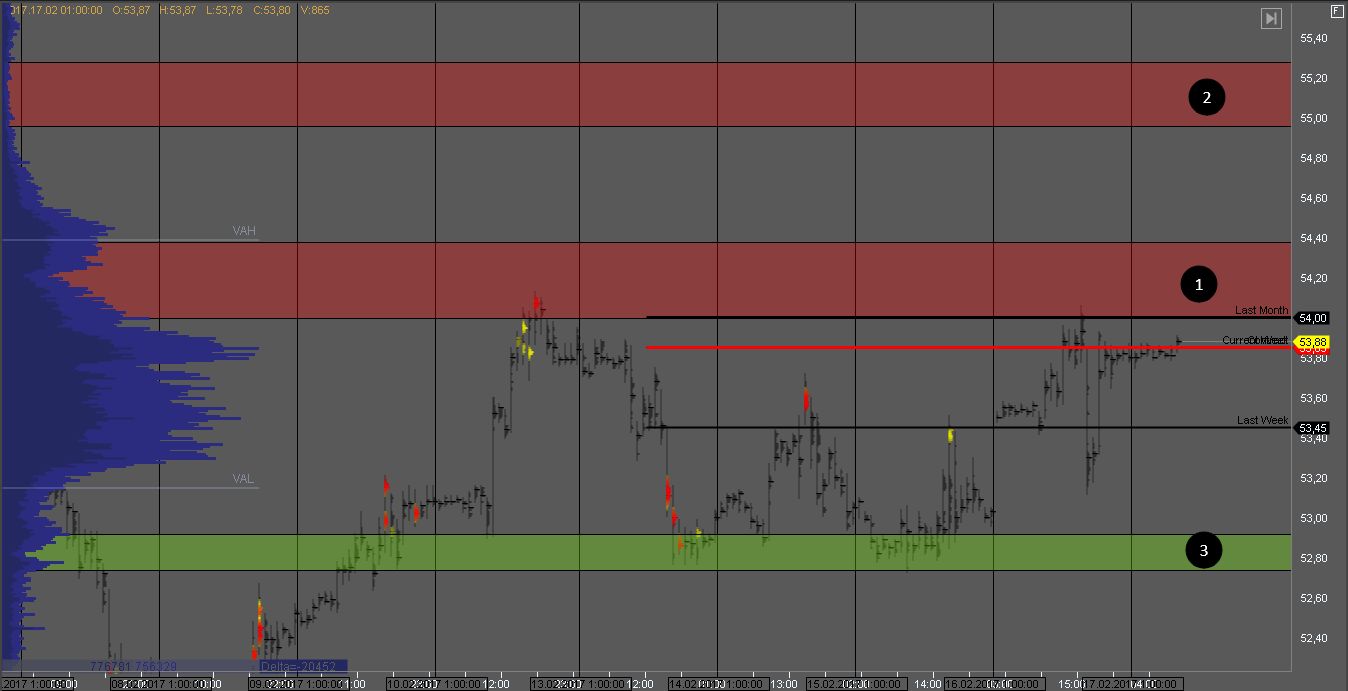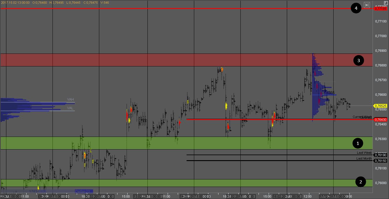 Покупатель удержал котировку на тесте зоны 1 и движется к цели в зоне сопротивления 3. На тесте зоны 3 можно рассматривать краткосрочные продажи. На повторном тесте зоны 1 можно рассматривать краткосрочные покупки.