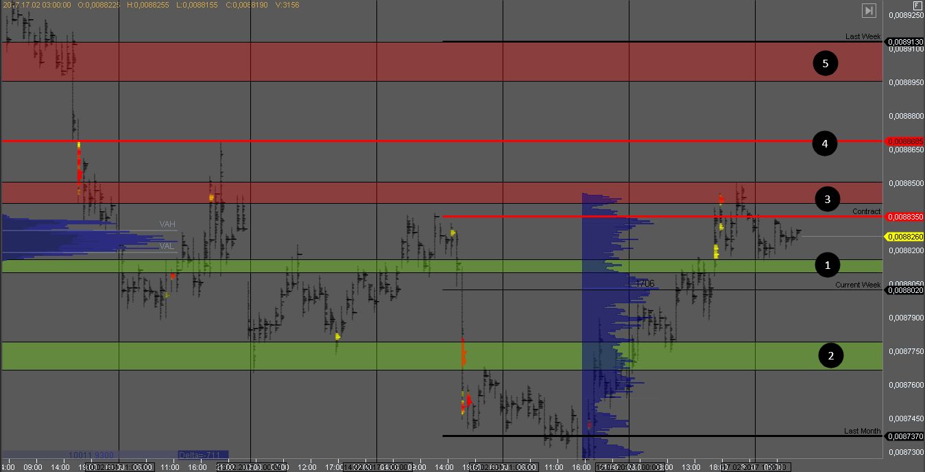 Покупатель контролирует котировку на евро с зоной поддержки 1. НА ее тесте можно рассматривать покупки, но в случае ее пробоя мы получим признаки слабости покупателя и продажи могут возобновиться к зоне 2 с объемом прошлого месяца. Цель роста в зоне сопротивления 3.