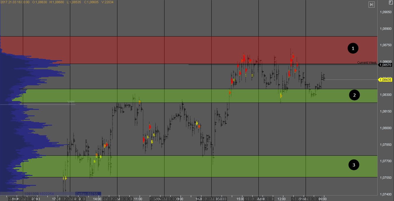 Если им удастся закрепиться выше, следующая цель в зоне 1. Если продавец удержит котировку в зоне 2 и вернется обратно в диапазон на ре-тесте зоны 2, можно поискать краткосрочные продажи внутри дня.