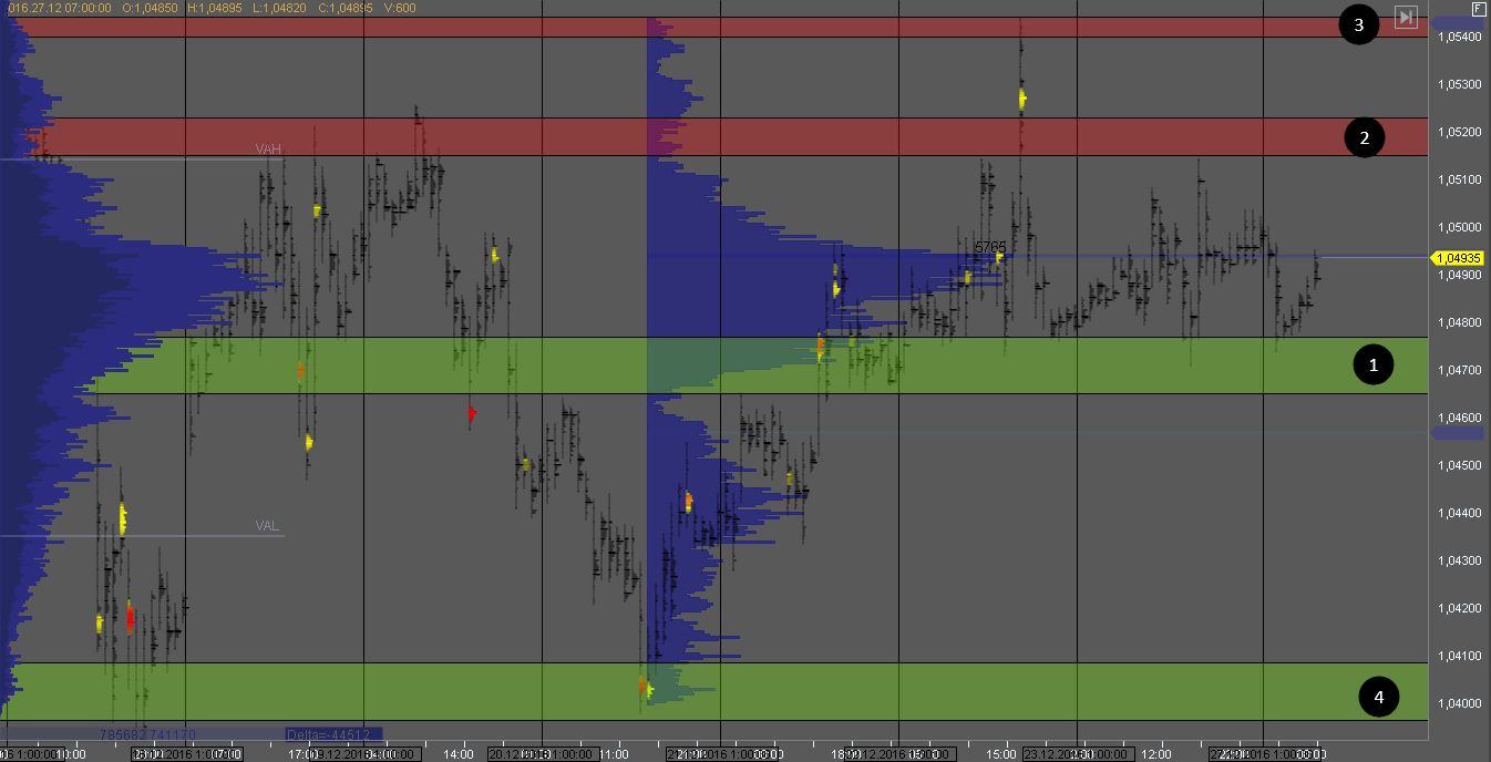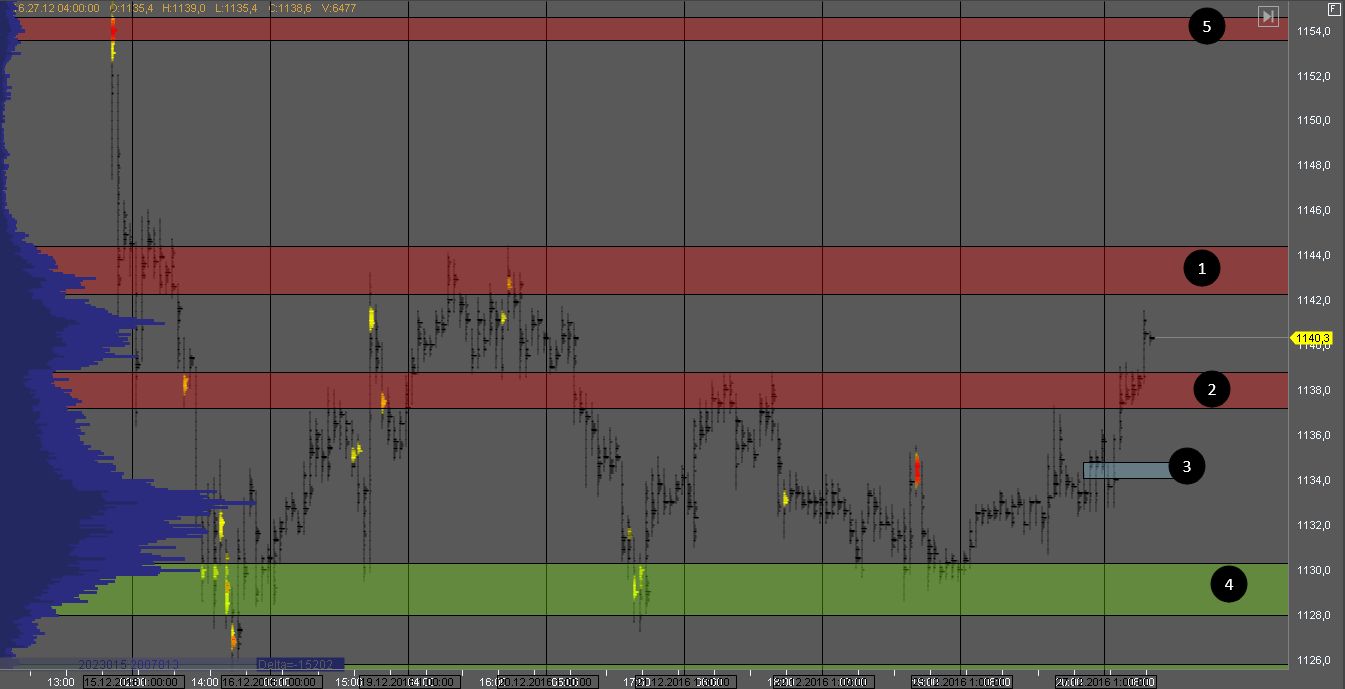 Покупатель взял котировку под контроль и продавил зону сопротивления 2 на азиатской сессии. Следующая цель для покупателей в зоне 1, от нее можно искать краткосрочные продажи. Если покупатель продавит и зону 1, то появиться шанс продолжить движение вверх к цели в зоне 5. Если продавец вернет котировку ниже зоны 2, торговля в консолидации продолжиться.