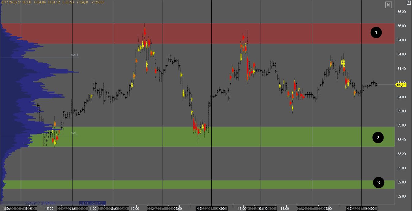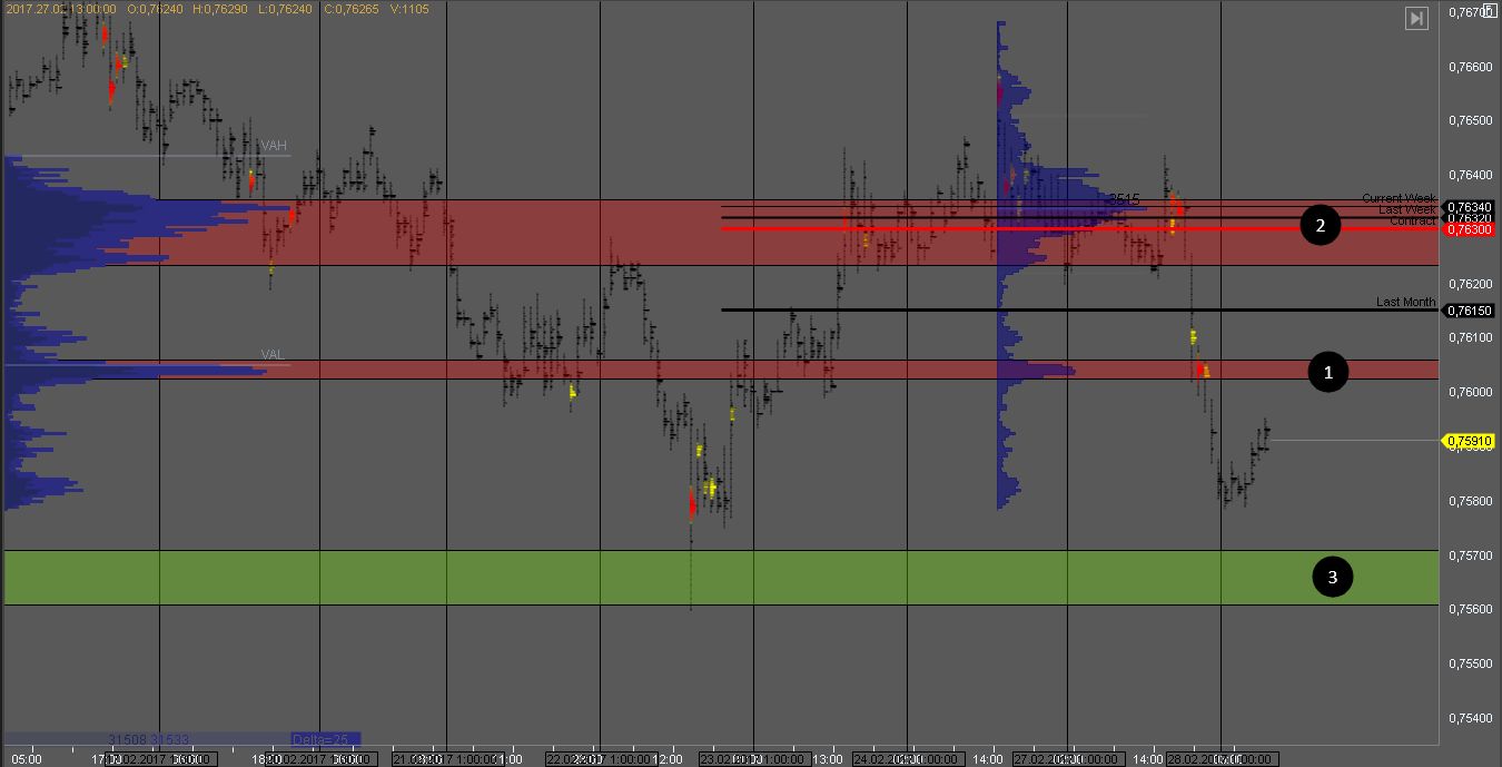 Фьючерс USD_CADКанадец вышел вниз под контролем продавца из объема, накопленного в зоне 2, и практически достиг цели в зоне 3. На тесте сопротивления 1 можно поискать продажи внутри дня с целью в зоне 3. Так же можно поискать возможности для продажи на тесте зоны 2 с объемом продавца и скоплением ключевых уровней.