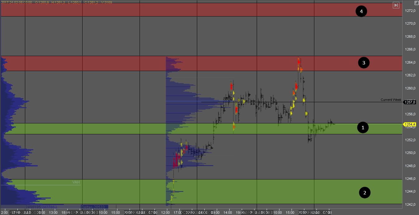 Фьючерс на золотоЗолото после импульса вверх в понедельник не смог удержаться наверху, и продавец попытался продавить объем покупателя и поддержку 1.