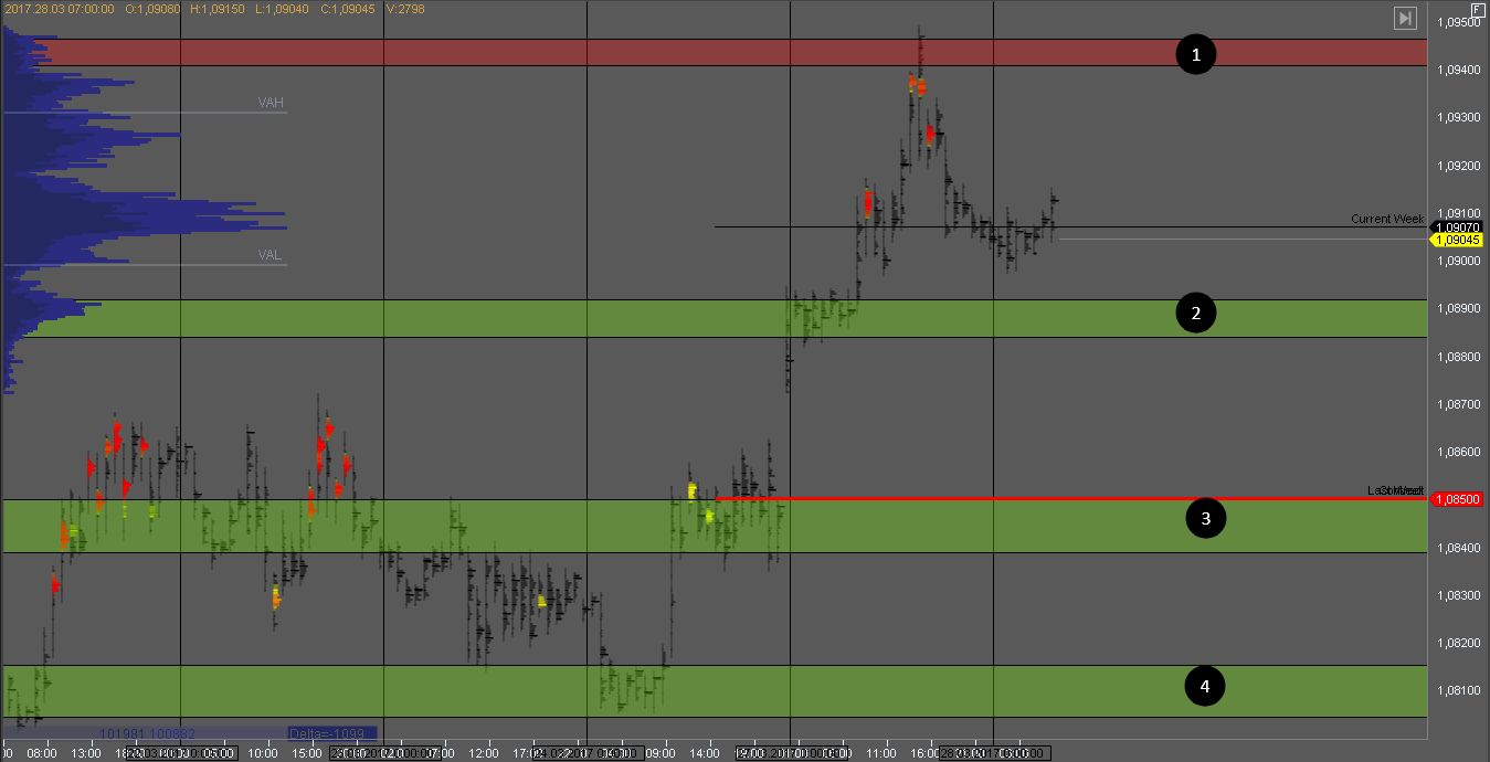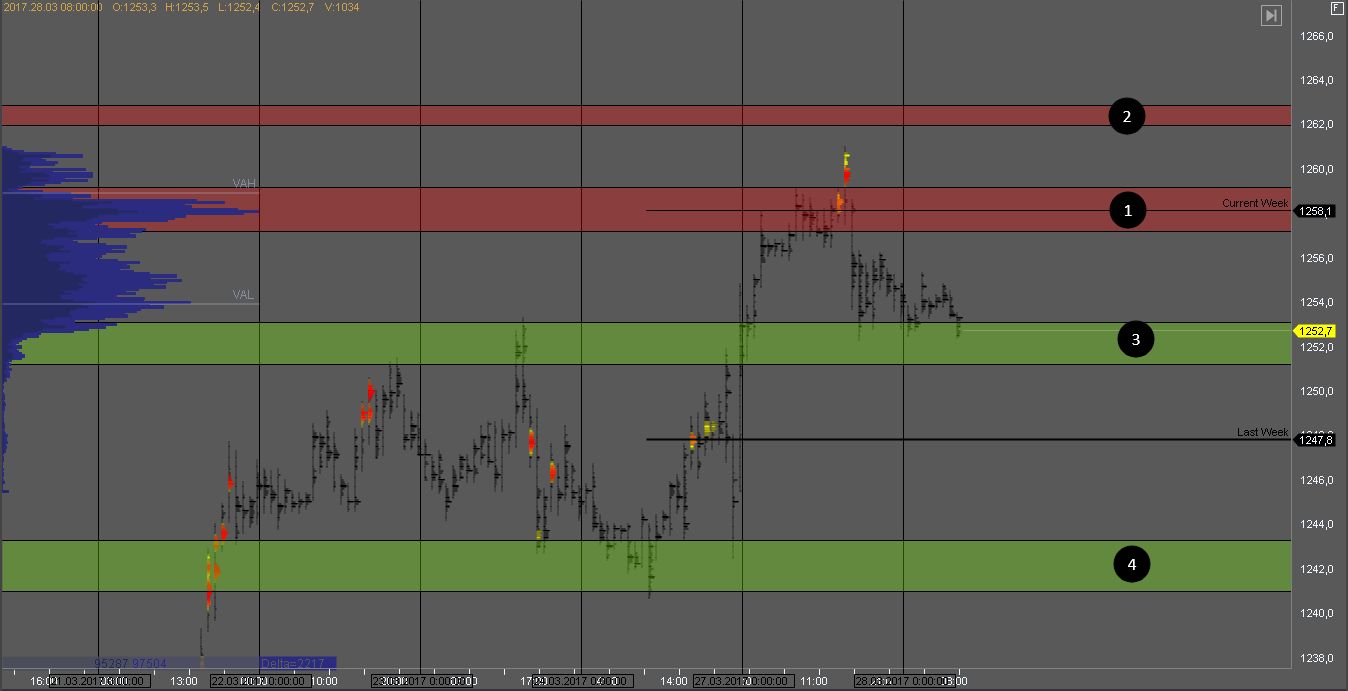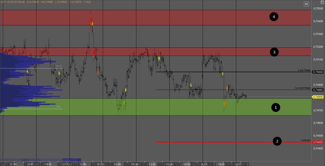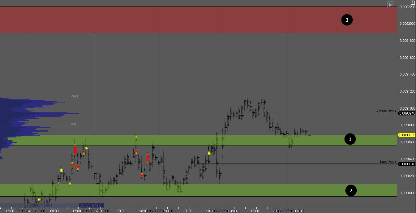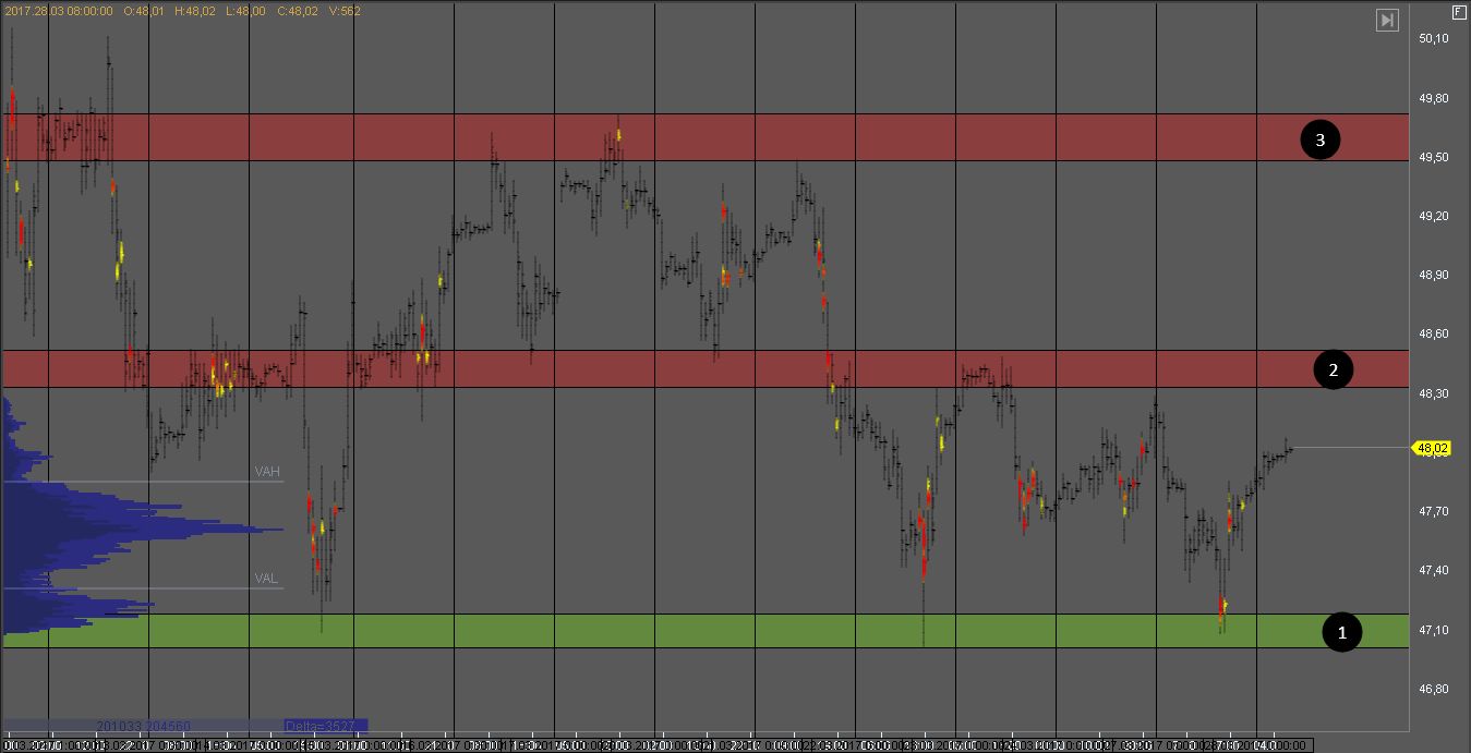Покупатель удержал котировку на тесте поддержки 1, и на данный момент тестирует объем продавца. В любой момент может произойти разворот внутри дня и продажи снова возобновятся к цели в зоне 1. Хорошая цена для поиска продажи на тесте зоны 3.