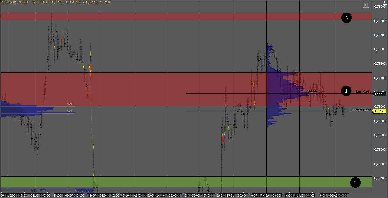 Канадец торгуется ниже объема продавца в зоне 1 и продажи на данный момент в приоритете. Но в случае пробоя зоны 1, мы получим признаки слабости продавца, и покупки могут продолжиться к цели в зоне 3. Если продавец удержит котировку в зоне 1, цель для продавцов в зоне 2.