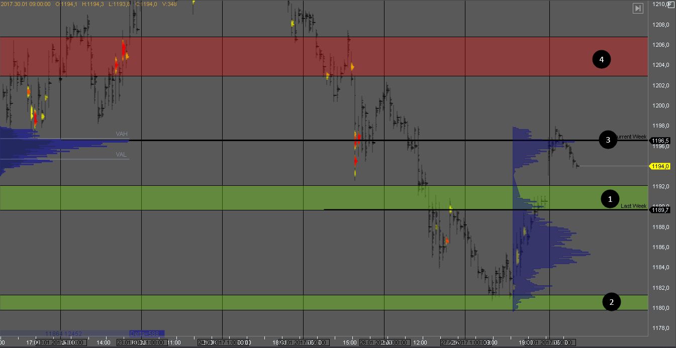 Покупатель пытается продавить сопротивление 1, но продавец пока сдерживает рост. Цель для продавцов в зонах 3 и 4. Если покупатель, продавит зону сопротивления 1, продажи станут не актуальными и рост должен продолжиться к цели в зоне 2.