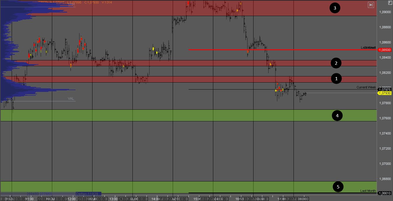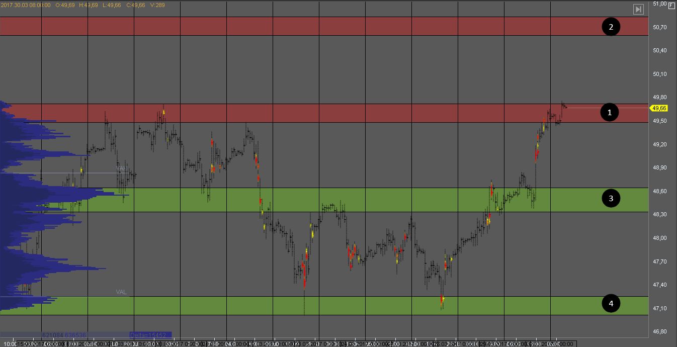 Пробой зоны 2 даст возможность покупателям продолжить движение к зоне 2, откуда снова можно будет поискать продажи. Пробой поддержки 3 должен подтвердить силу продавца и снижение может продолжиться к целям 4 и 5.