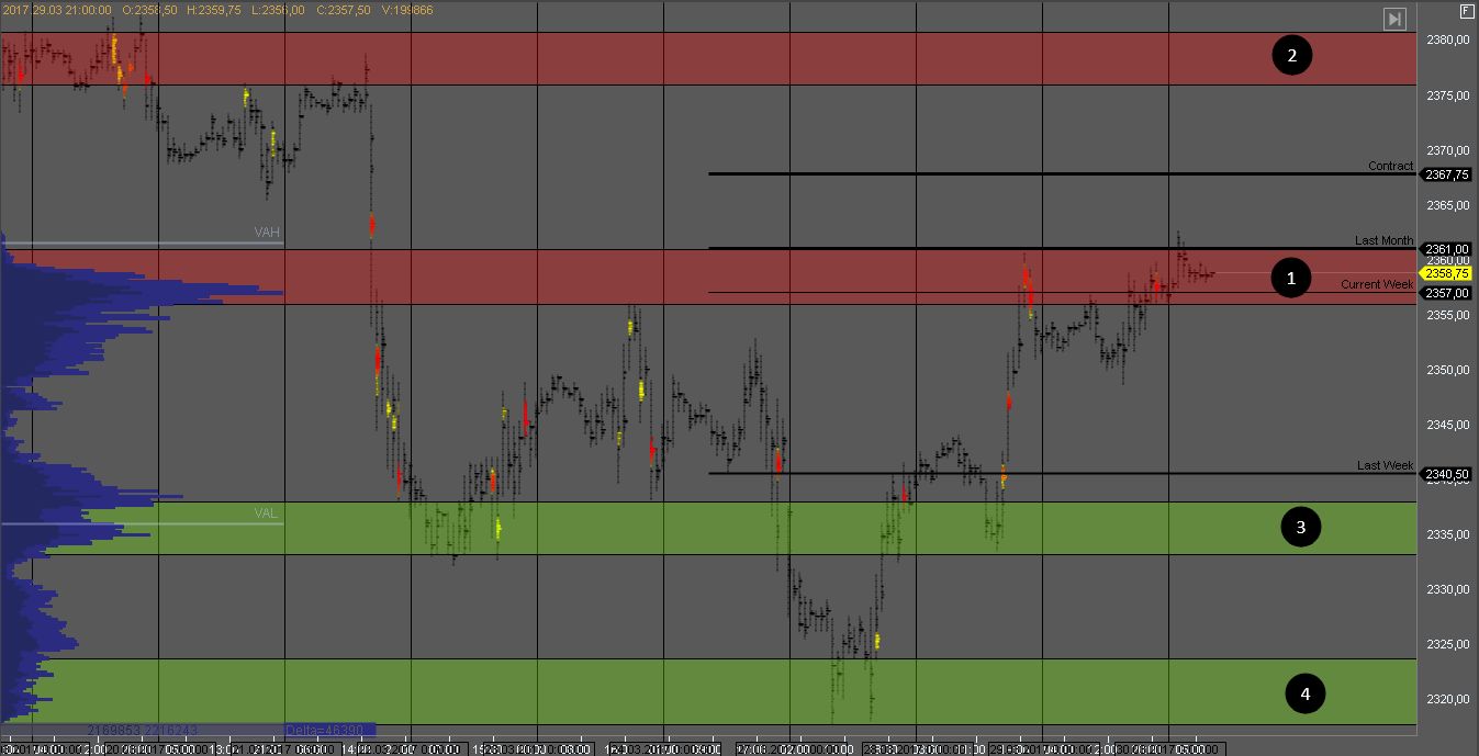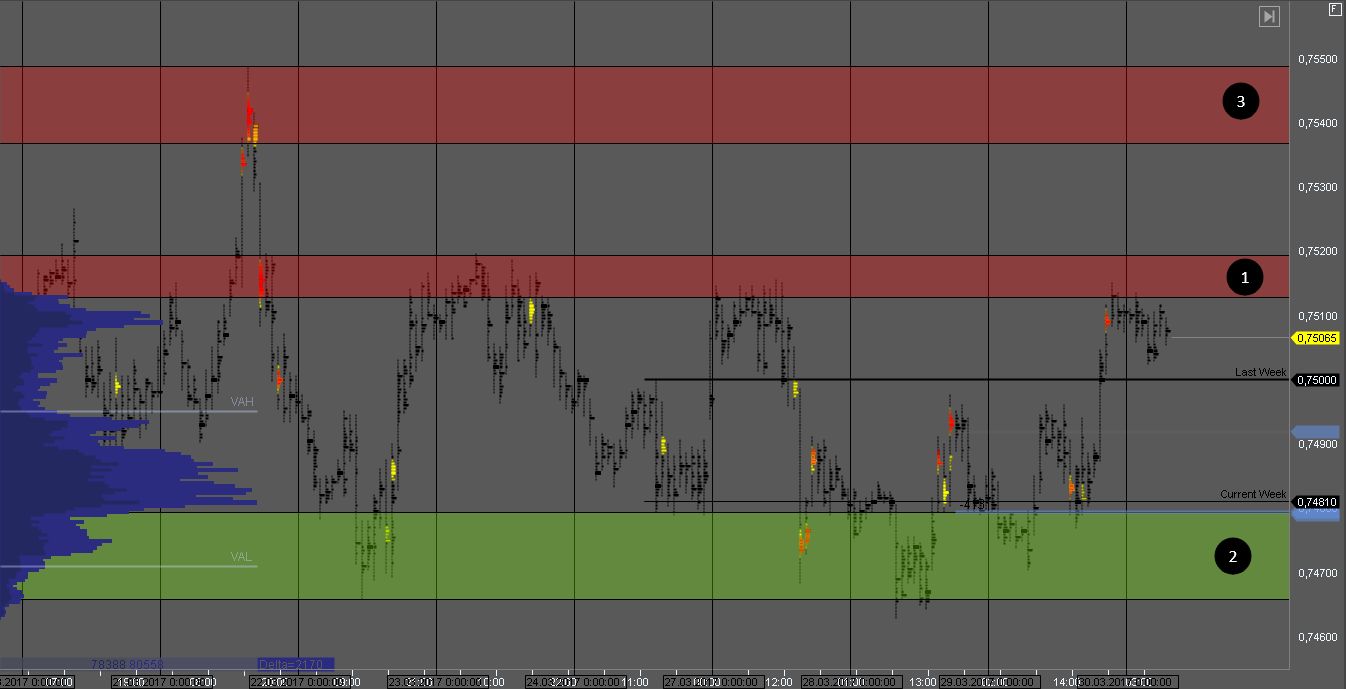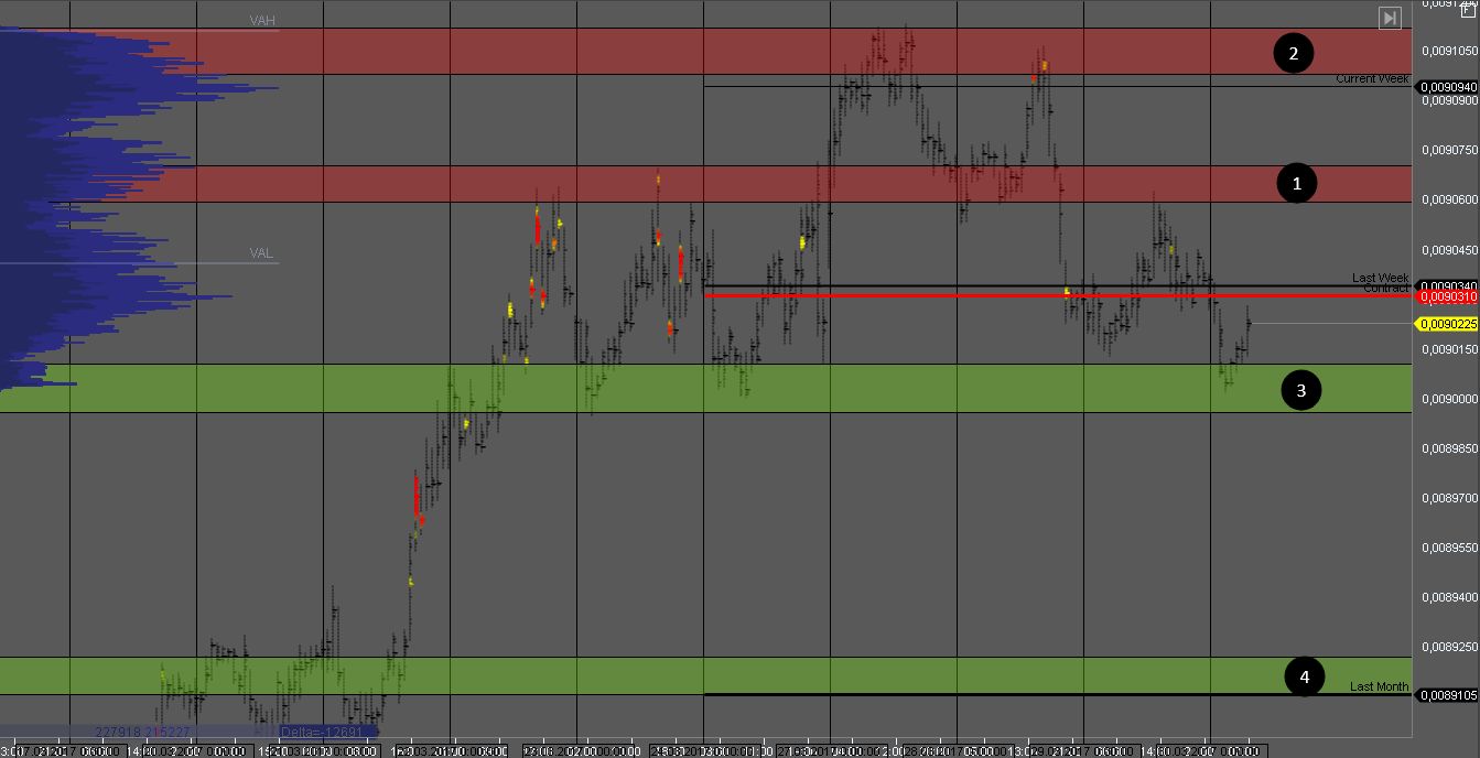 Покупатель пробил в четверг зону 3 и достиг цели в зоне сопротивления 1. На ее тесте можно рассматривать продажи, но желательно получить широкий паттерн с подтверждением силы продавца.