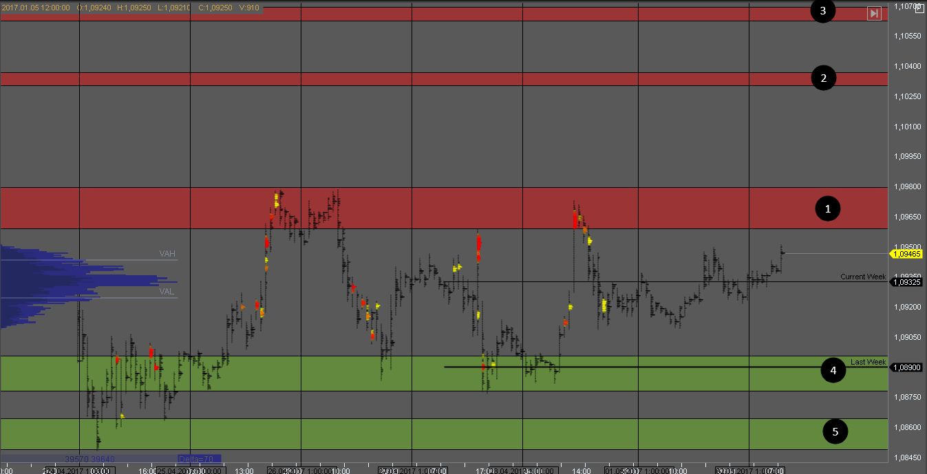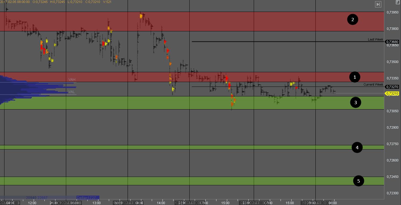 Первая цель для покупателей - в зоне 3. Пробой поддержки покажет признаки слабости покупателя и продажи могут возобновиться к цели в зоне 2.