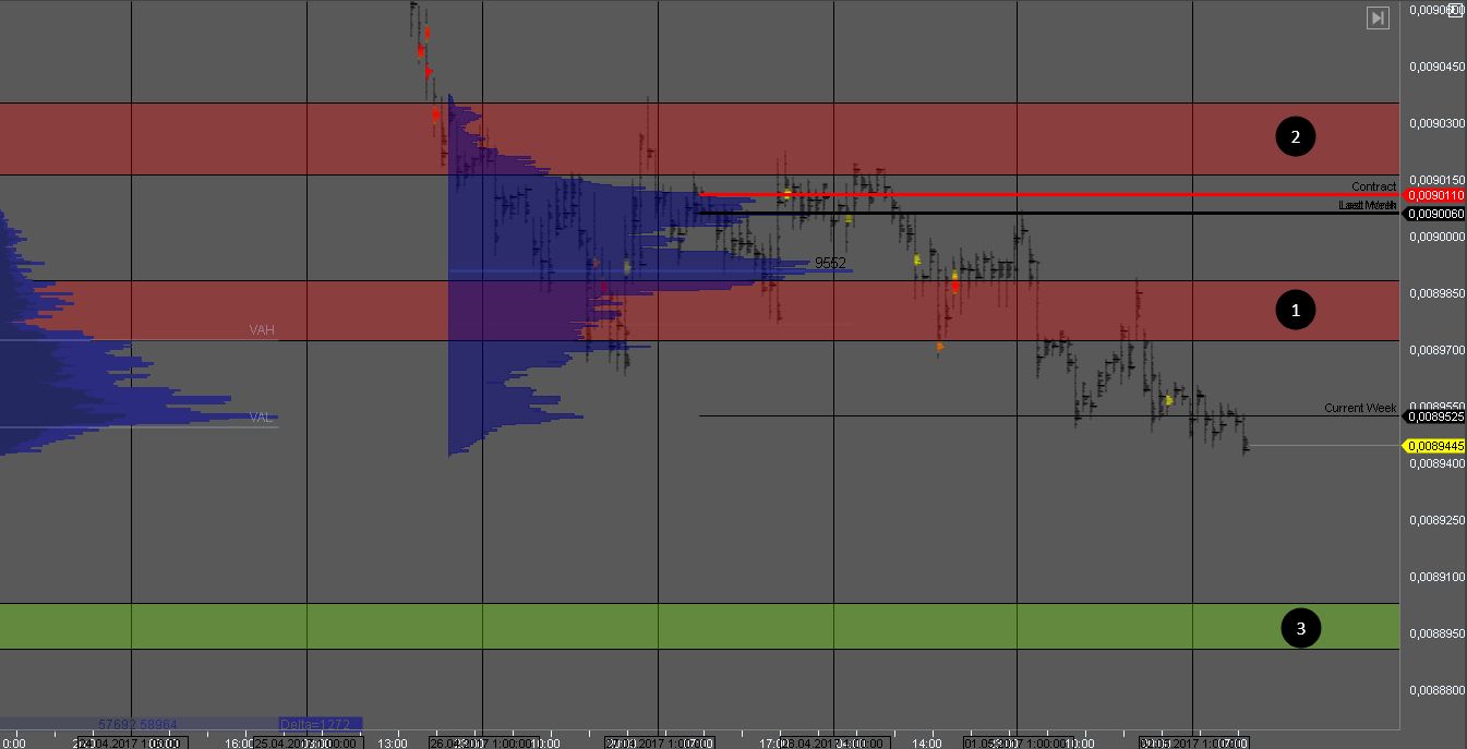 Также, зона 1 интересна для поиска продаж. Пробой сопротивления 1 отменит поиск продаж, так как мы получим признаки слабости продавца.