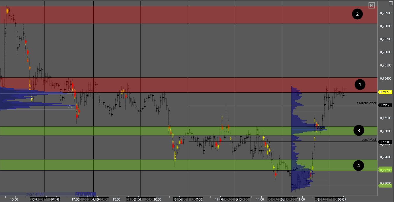 На канадце мы видим сильную реакцию покупателя после ложного пробоя зоны 4 в пятницу. Зона 1 интересна для краткосрочных продаж.
