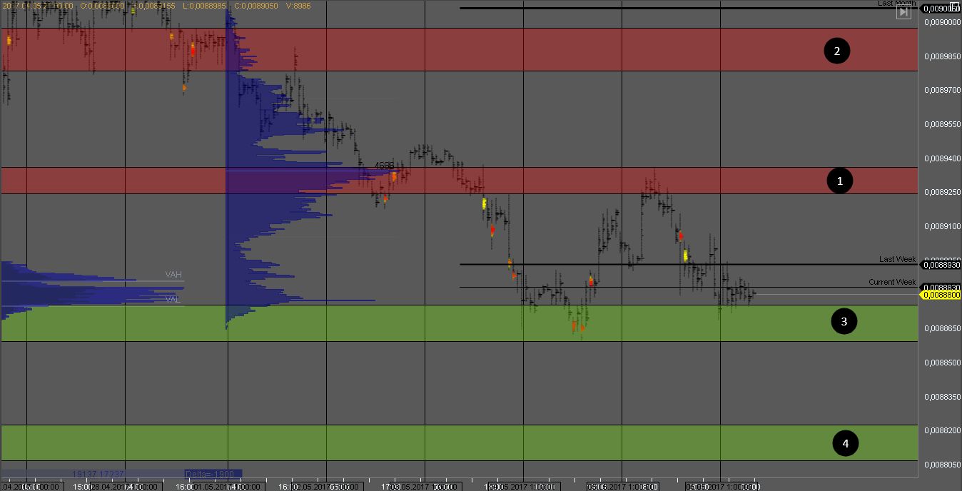 Продавец удержал объем в зоне 1 в пятницу и котировка тестирует поддержку 1, на которой можно ожидать краткосрочную реакцию покупателя.