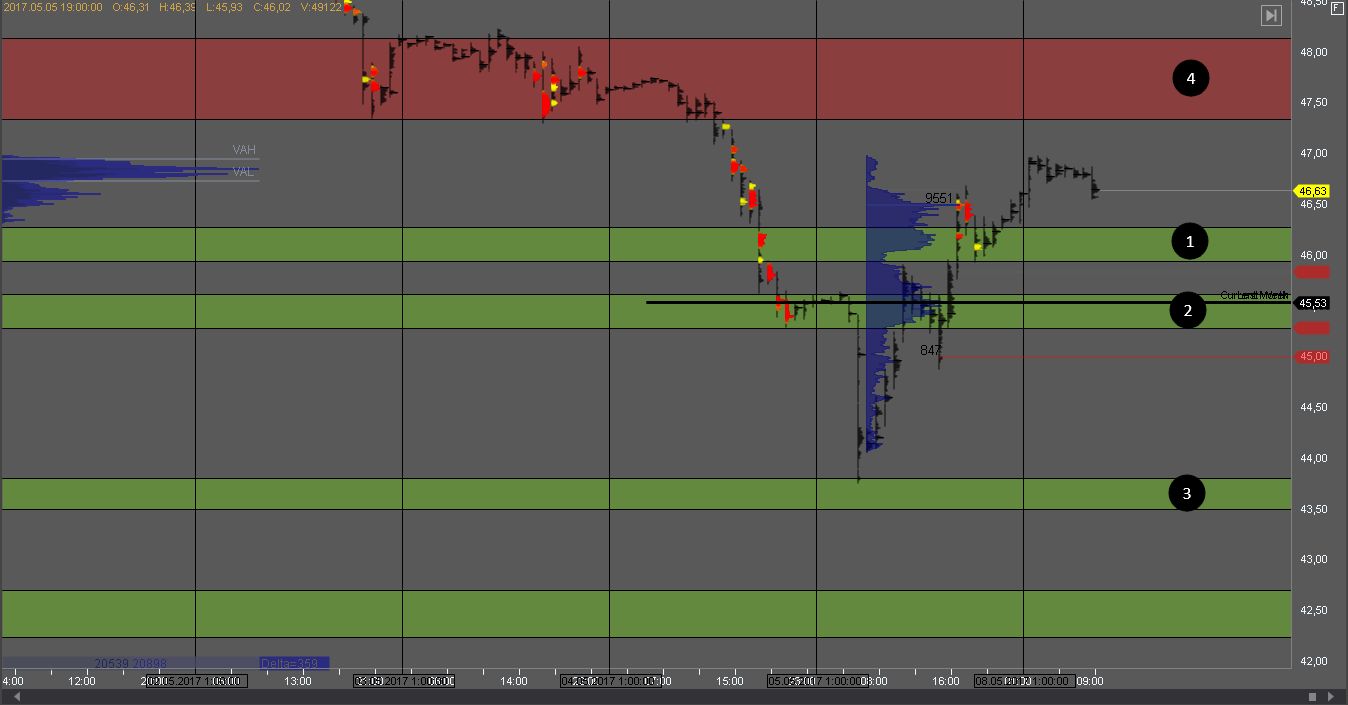 Зоны 1 и 3 интересны для поиска краткосрочных сделок на отскок. Пробой зоны 3 отменит поиск покупок.