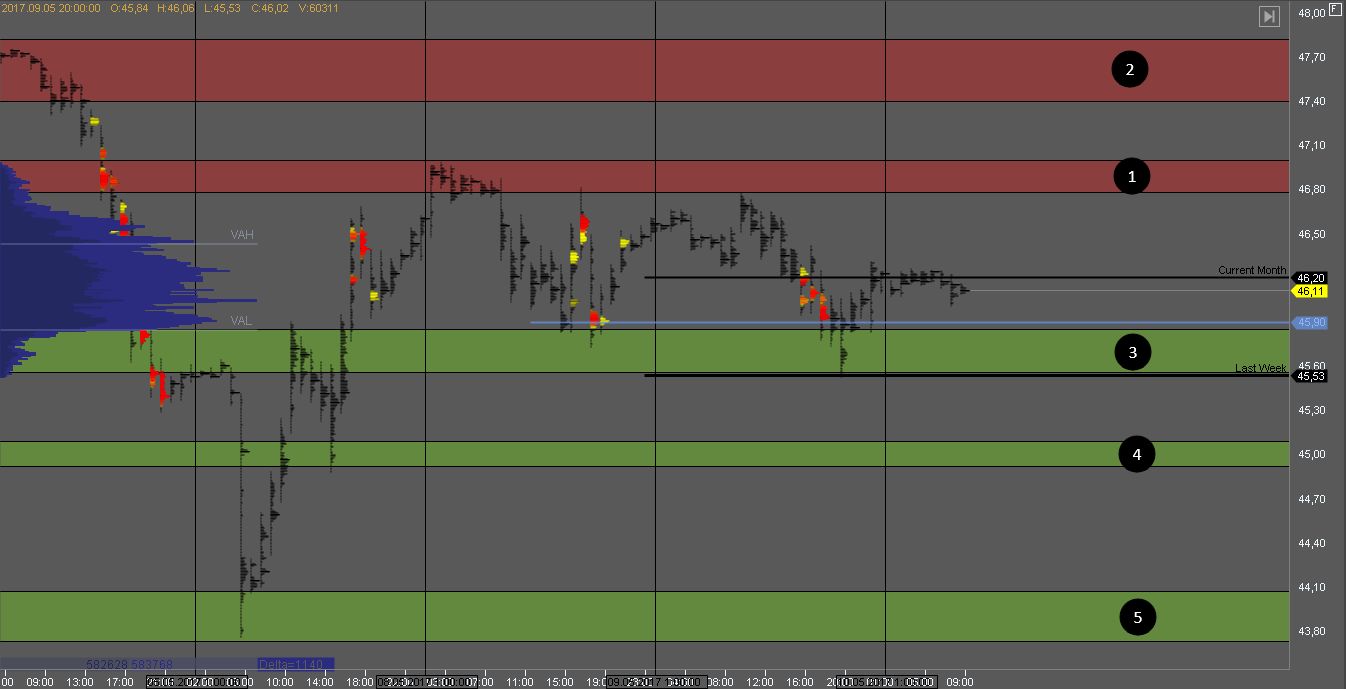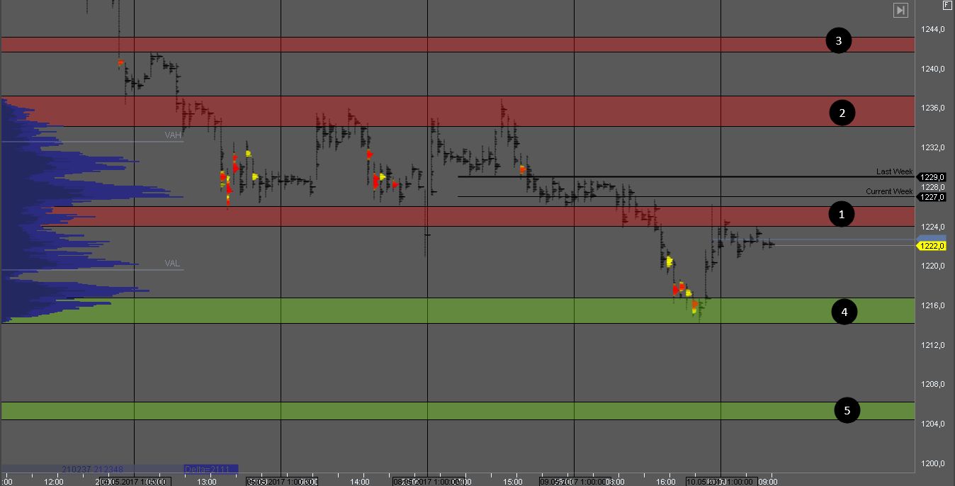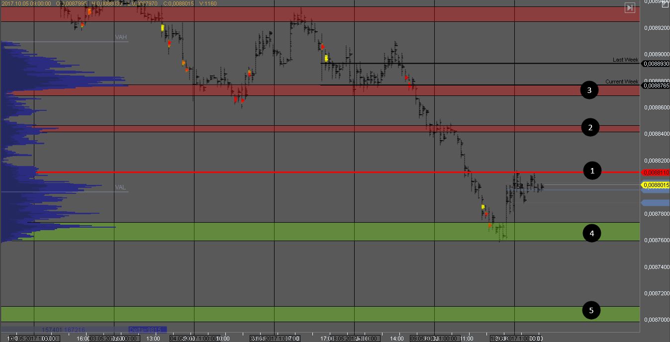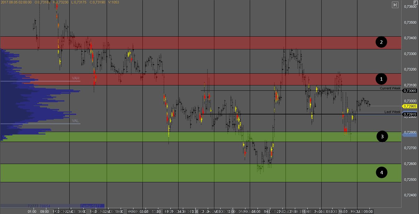 Если внутри дня мы получим разворот вшорт, продажи могут продолжиться к зоне 4, а в случае пробоя, к цели в зоне 5.