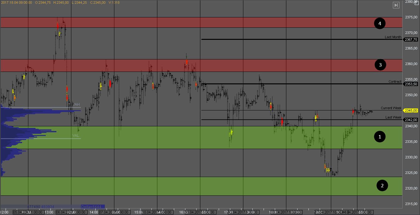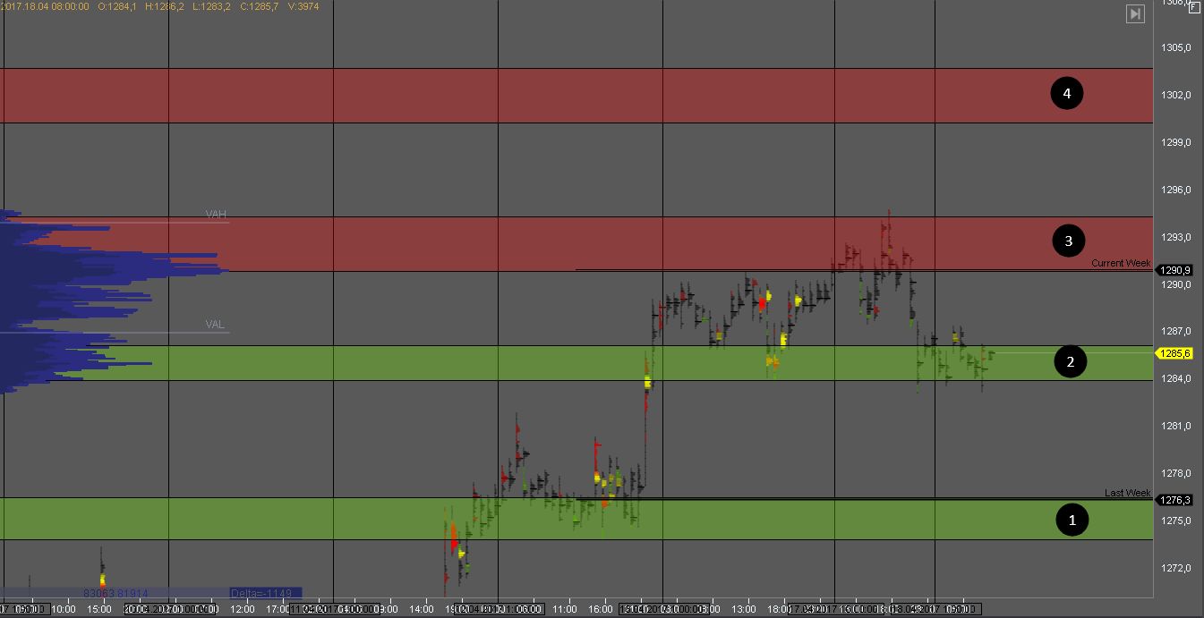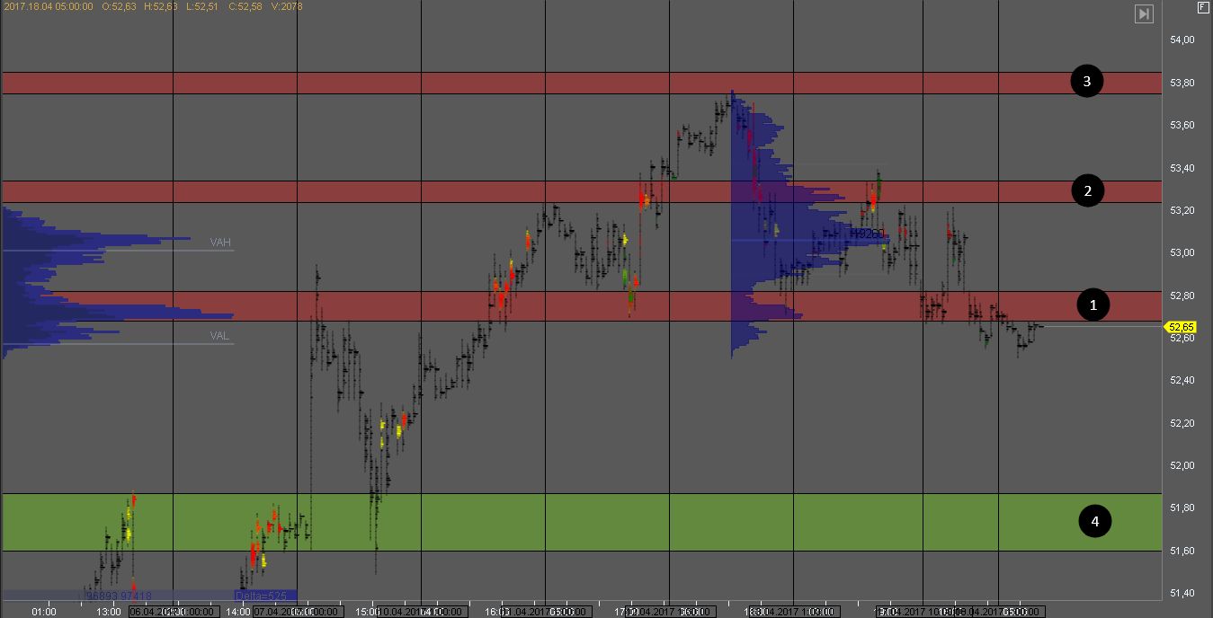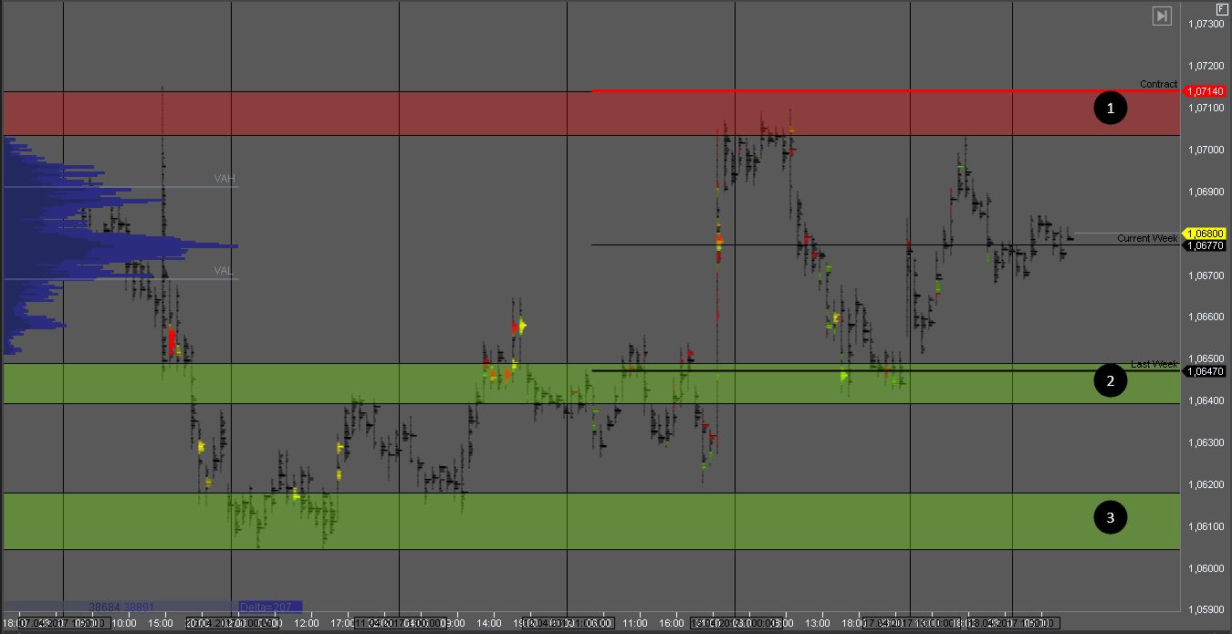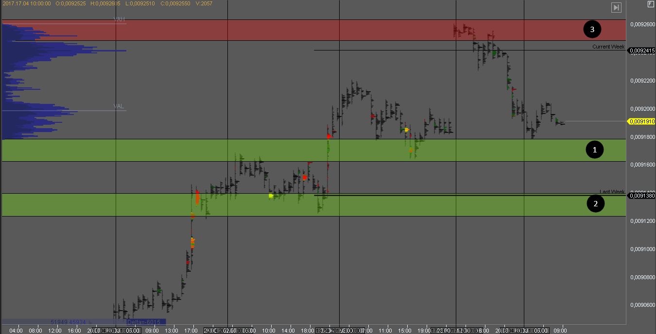 Продавец в зоне сопротивления 3 не пустил котировку выше, и на данный момент тестирует объем покупателя в зоне 1. При наличии паттерна, можно рассматривать покупки от зоны 1.