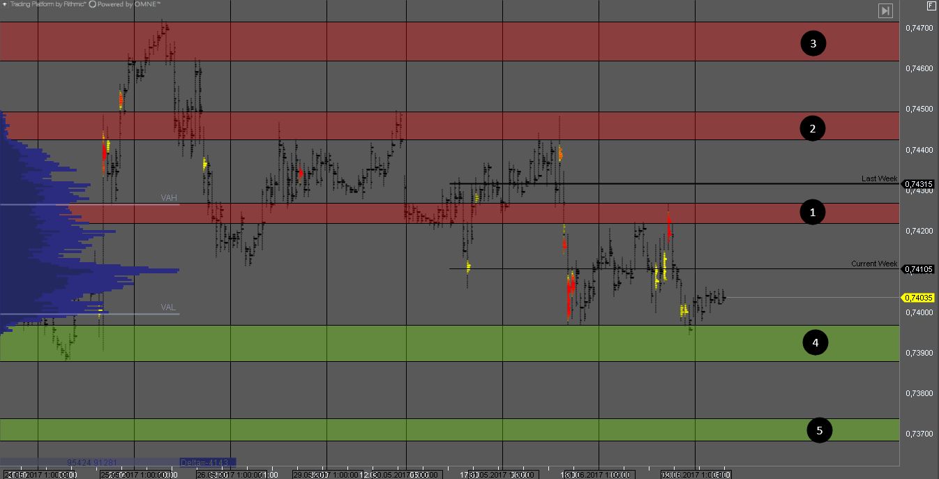 Канадец, протестировав несколько раз зону 1, сформировал сопротивление и на данный момент торгуется в консолидации 1-4.