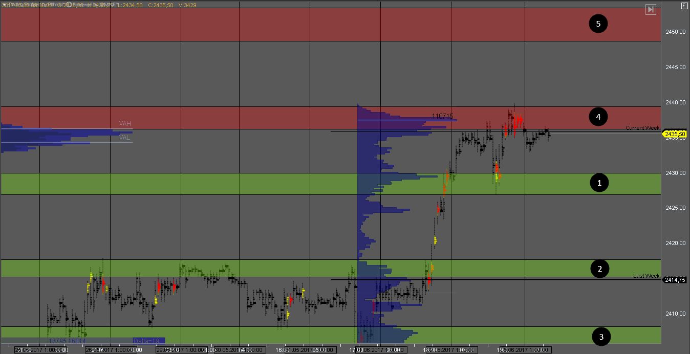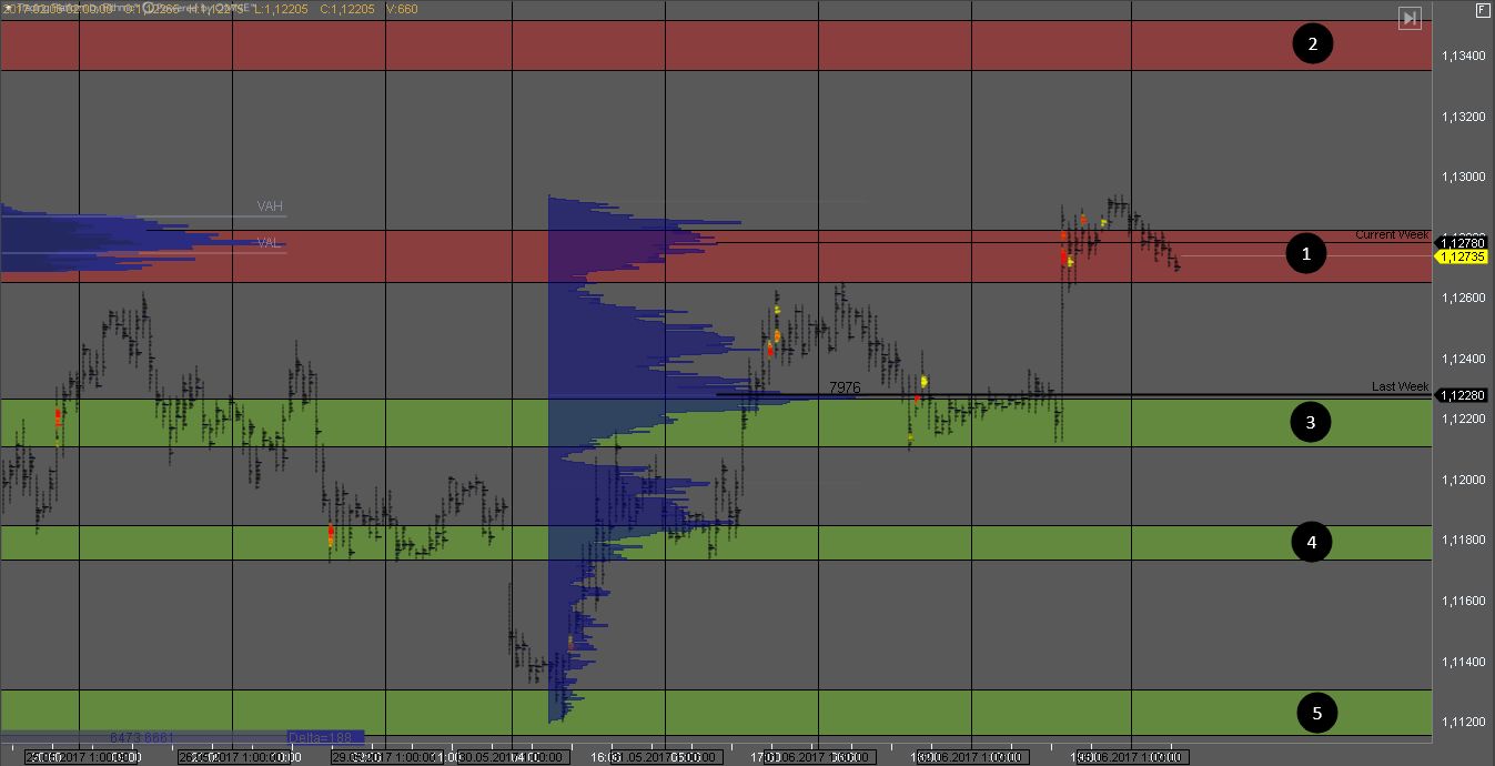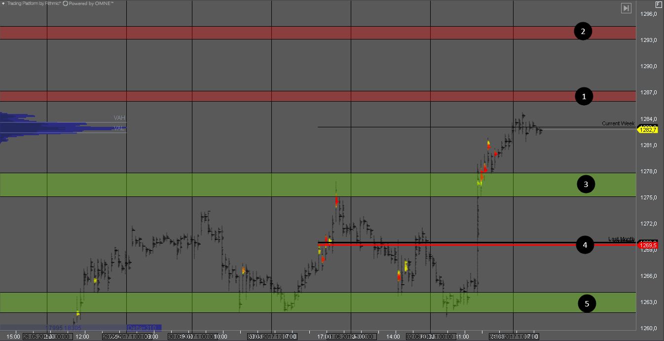 Если же сопротивление будет пробито, мы получим признаки слабости продавца, и внутри дня можно будет искать трендовые формации на покупку с целью в зоне 2.