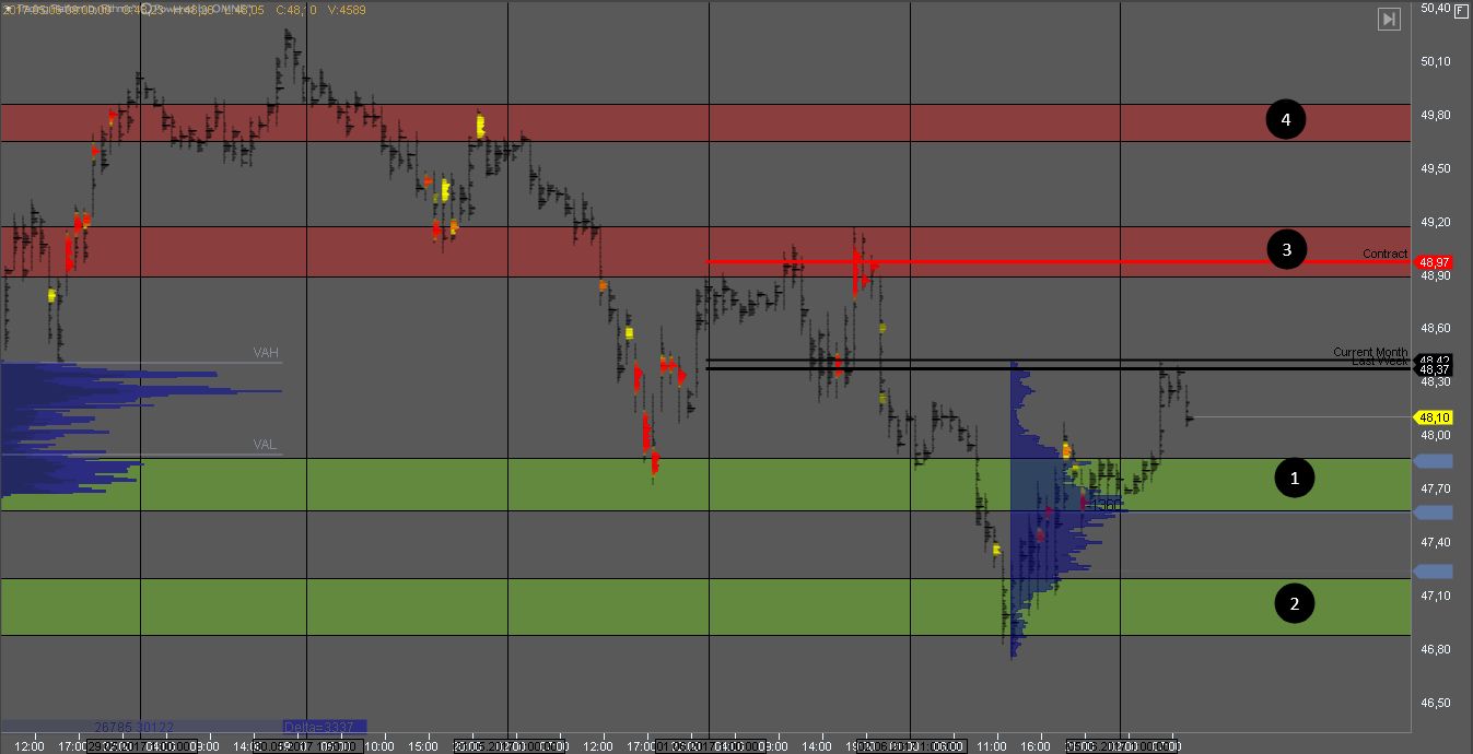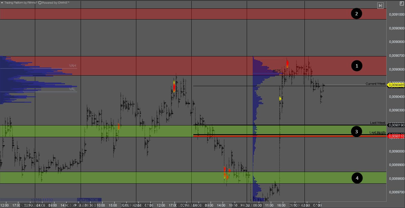 Если продавец пробойт зону 1 вниз, краткосрочно должны начаться продажи к зоне 3, где снова может появиться покупатель.