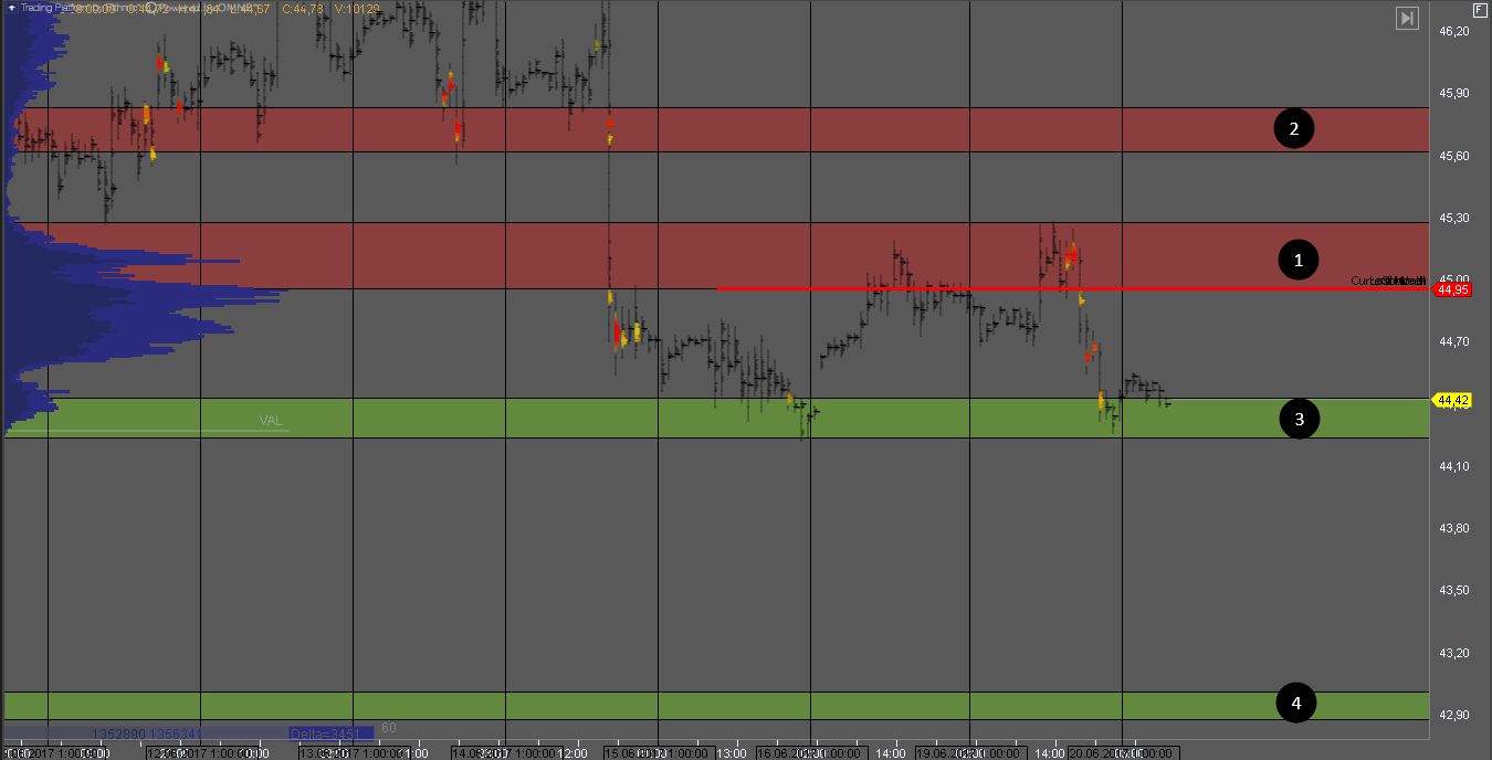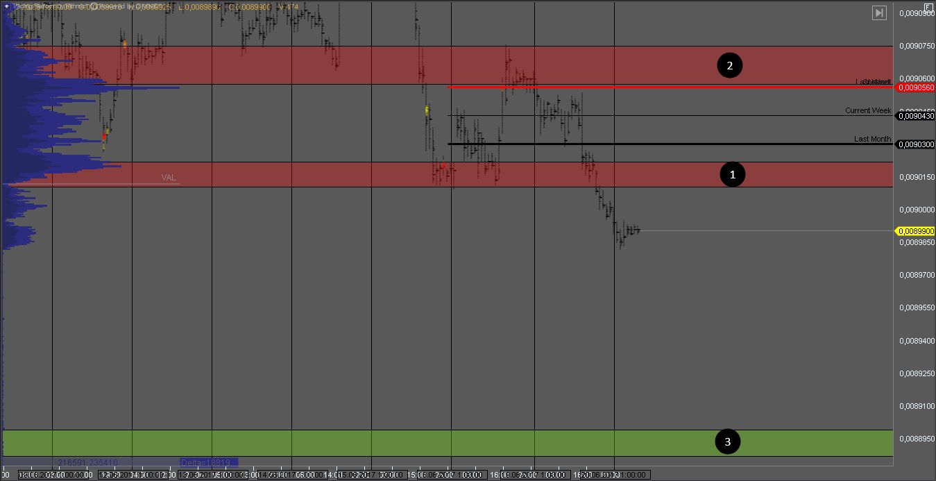 Пробой сопротивления 1 даст признаки слабости продавца и стоит отследить реакцию покупателя на тест зоны 1 с обратной стороны.
