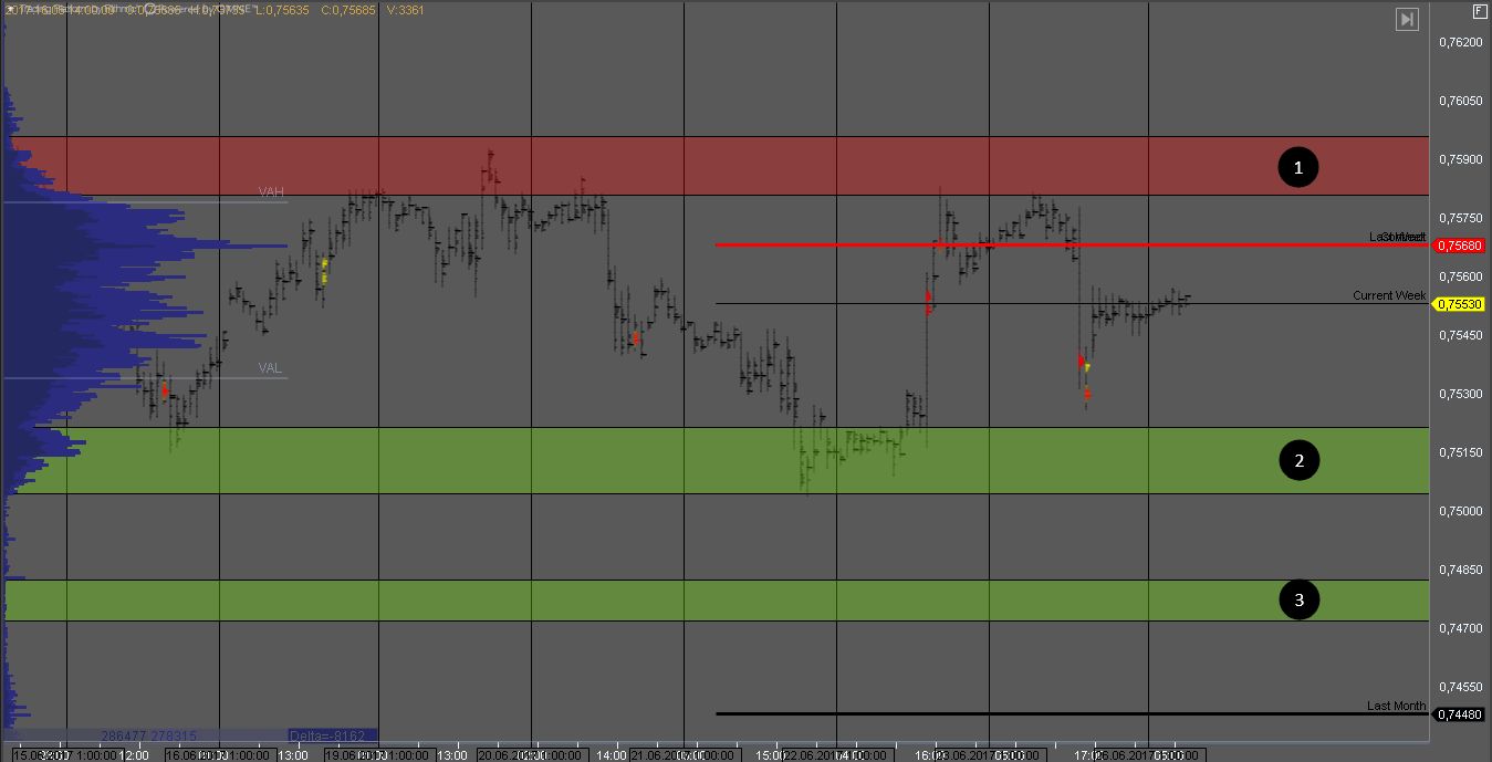 На данный момент канадец торгуется в середине диапазона, где трендовые модели несут в себе повышенный риск. Стоит дождаться теста границ диапазона или выхода из баланса.