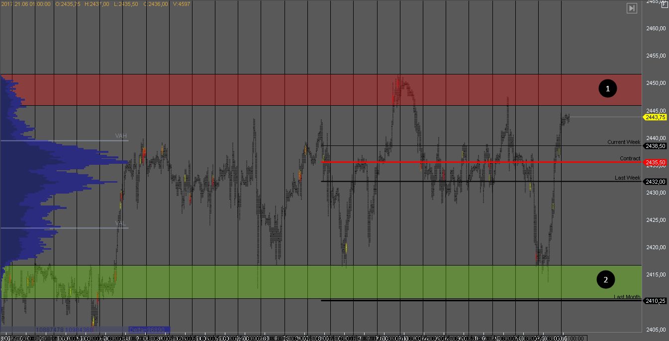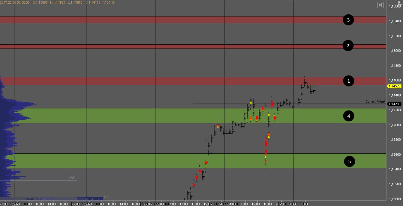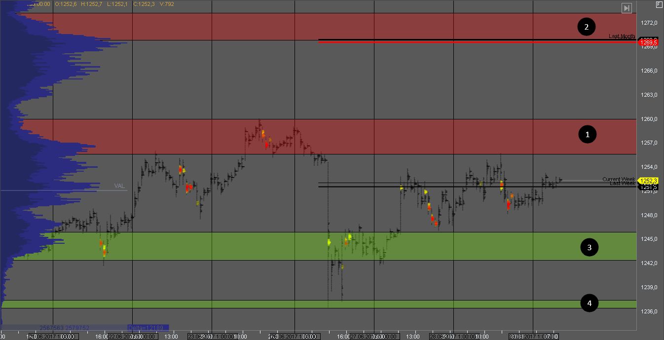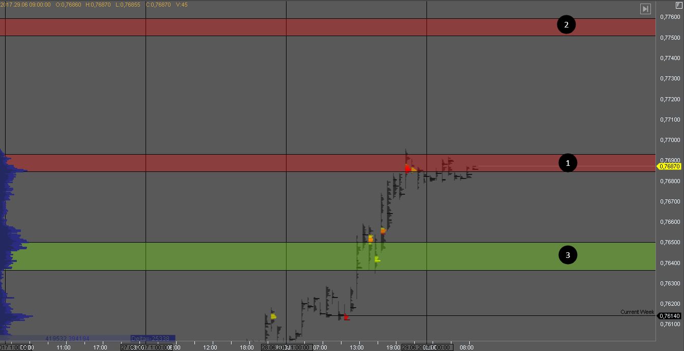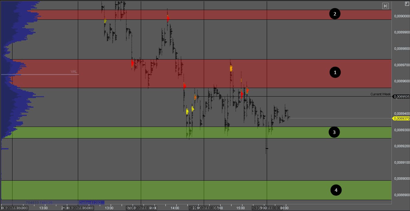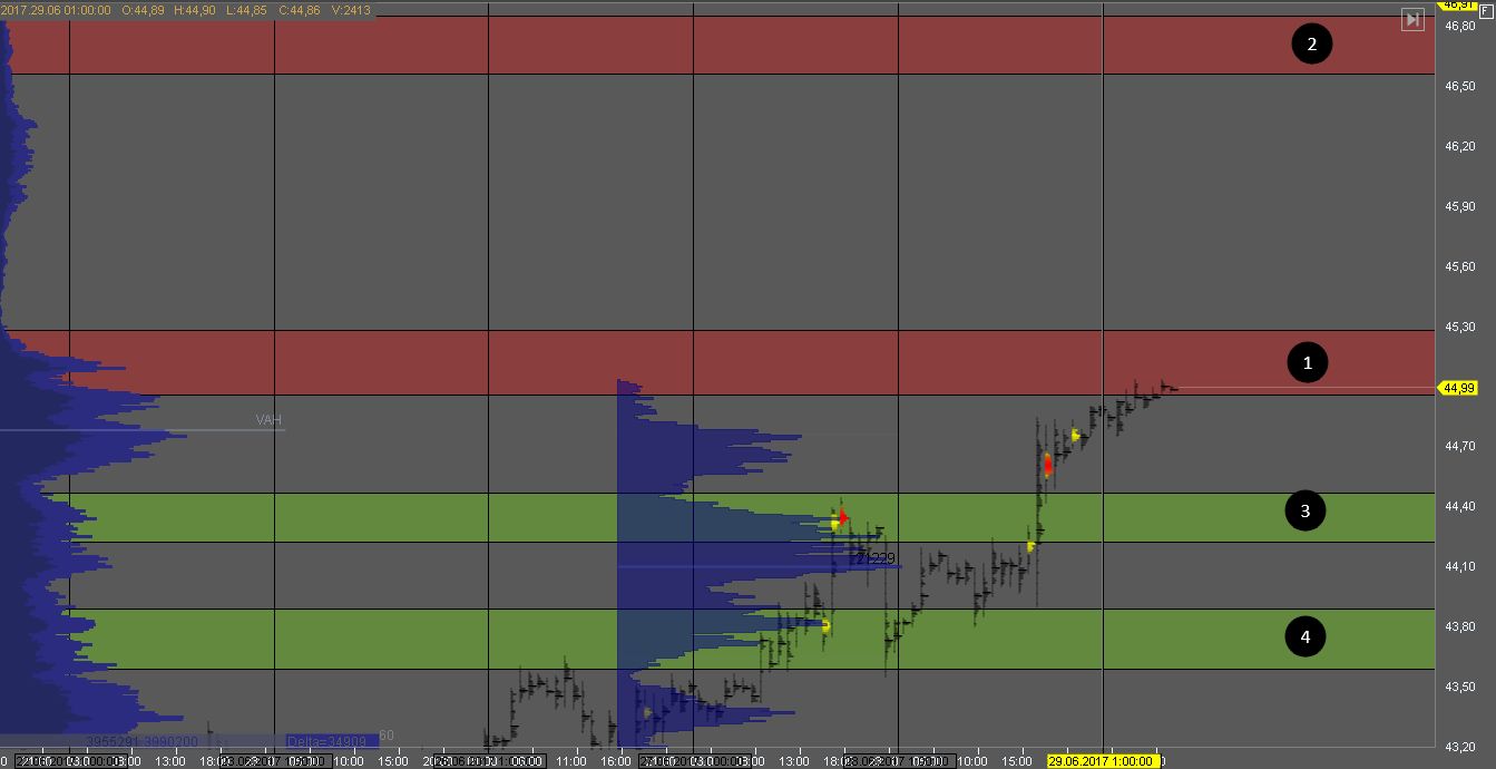 На тесте поддержек можно искать возможности для покупки, но в случае пробоя зоны 4, мы получим признаки слабости покупателя и рассматривать покупки станет рискованно. Цель для покупателя в зоне 2.