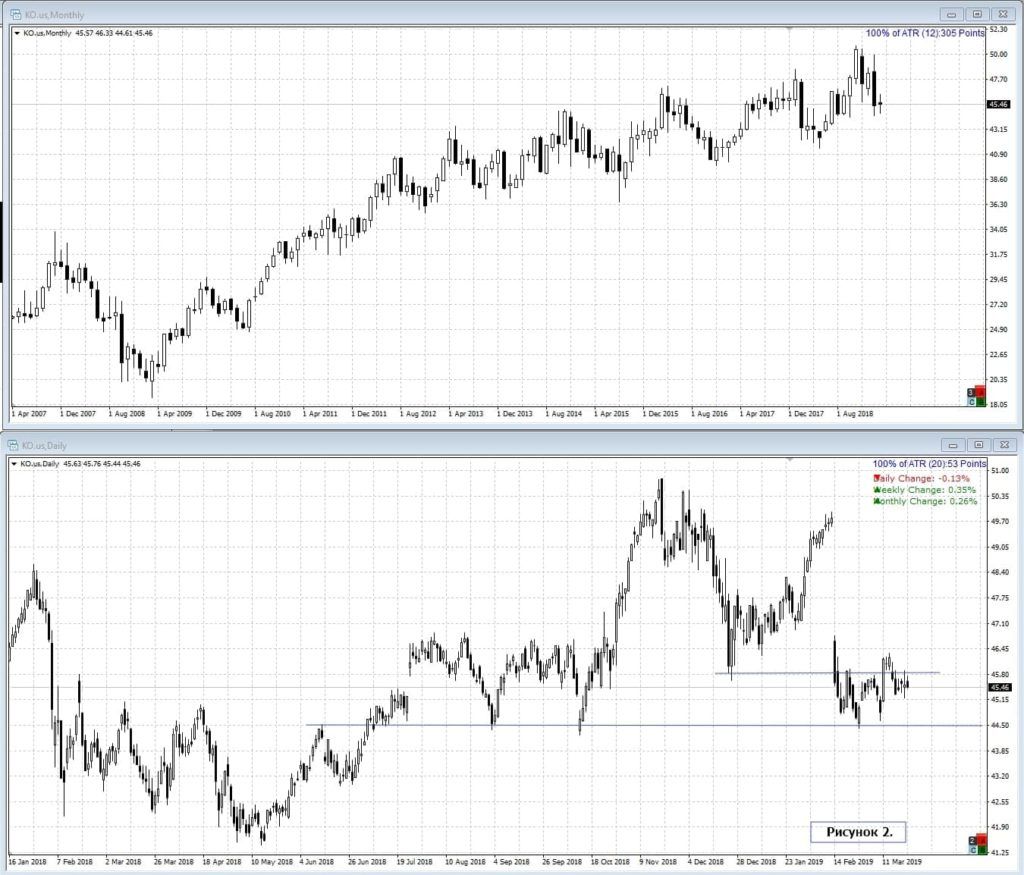 Если от фундаментальной картины переходить к технической, то уровни 2008-2019 годов были, конечно, очень привлекательны, и KO одна из тех акций, с которых начинаются осторожные покупки.
