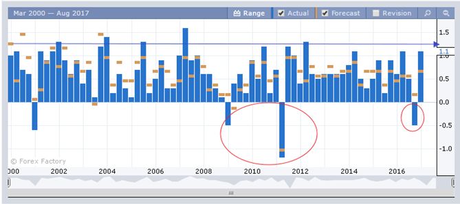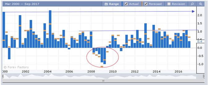 По цифрам ВВП видно, что данные по Новой Зеландии вслед за общемировым кризисом в 2008 году ушли в минусовую зону. Однако, в отличие от Еврозоны (рассматривали в предыдущих обзорах) восстановление произошло также быстро до докризисного периода.