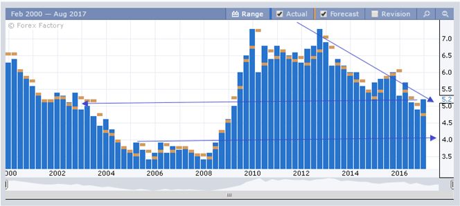 Таким образом, говорить о докризисном восстановлении не приходится, но цифры по безработице находятся на своих средних значениях. Опять же, Австралия не следует с большего общемировой тенденции, если посмотреть на график безработицы по США или Новой Зеландии, где прослеживается большая глобальная корреляция.