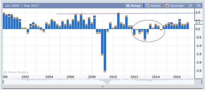 Таким образом, по данным ВВП можно сделать первый вывод, что вероятнее всего, даже если власти Еврозоны посчитают экономику достаточно прочной, то темпы поднятия процентной ставки по Европе вряд ли будут опережать темпы подъема процентных ставок по США.