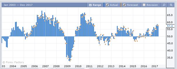 Сейчас же видно, что индикатор выходит на значения 2013-2014 годов, но до докризисных 65 еще пока далеко. С большей долей вероятности, это означает о продолжении проведения мягкой монетарной политики в стране.