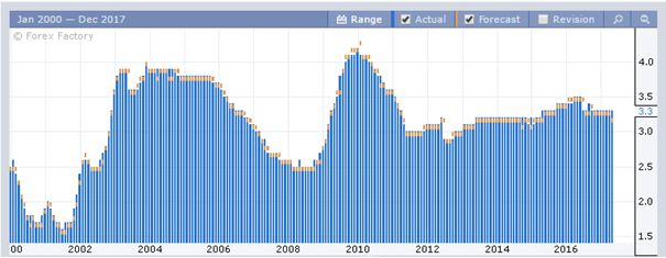 Однако были времена и с рекордно низкой безработицей в районе 1.5 % в 2000 г. Но если брать период с 2002 г. по 2008 г., то отчет выглядит вполне приемлемо.