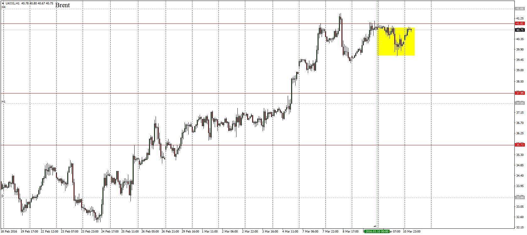 Цены на нефть торгуются в узком боковом диапазоне, так фьючерсы на нефть марки Brent торгуются в пределах 40-41$ за баррель. Отметка в 40$ выступает очень сильным сопротивлением.и инвесторы не спешат делать никаких выводов.