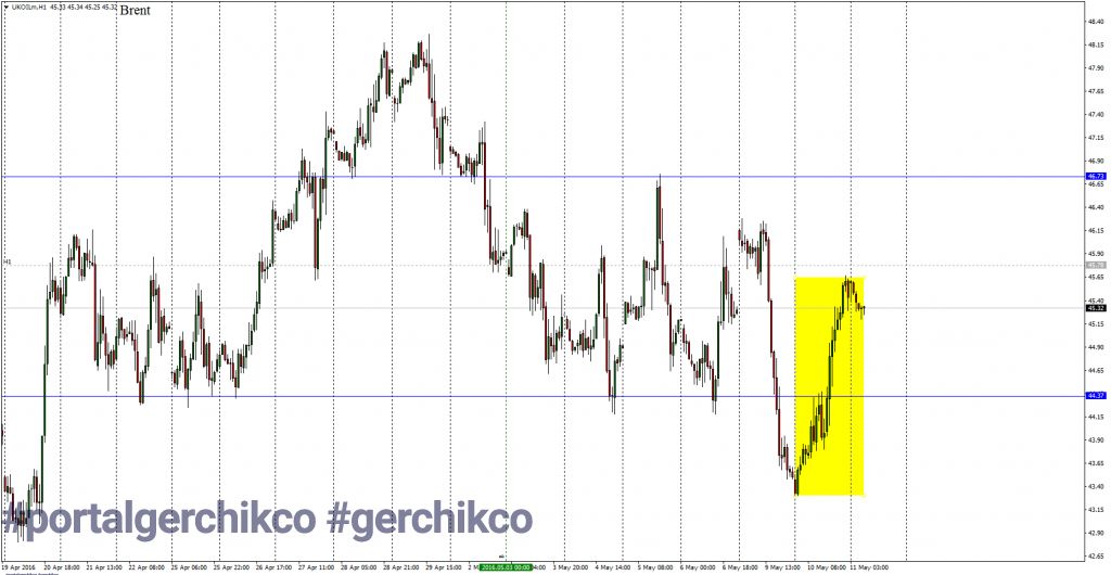В связи с этими высказываниями нефть на вчерашних торгах прибавила в цене и на данный момент фьючерсы на нефть марки Brent торгуются возле уровня 45.33$ за баррель.