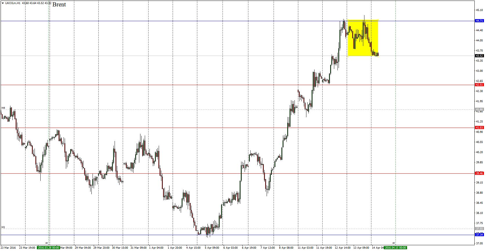 На фоне этих событий на вчерашних торгах нефть демонстрировала неопределенность, в итоге к концу закрытия Американской сессии утратила часть заработанных ранее позиций. На данный момент фьючерсы на нефть марки Brent торгуются возле цены 43.53$ за баррель.