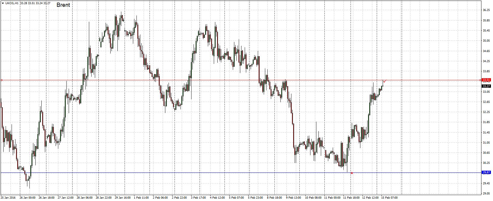 Как не странно, но на сегодняшних торгах фьючерсы на нефть марки Brent торгуются в плюсе и находятся возле отметки 33.30$ за баррель.