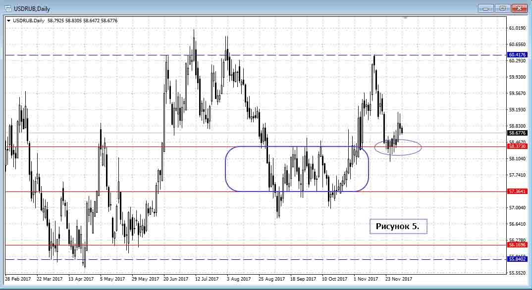 Но нет на внешнем фоне теперь поддержки в виде налоговых выплат и нефть марки Брент (CL_BRENT) близ 64 проявляет признаки к коррекции, что дополнительно может стать негативным фактором для российской валюты. Технически ключевой ценой остаётся 58.37.