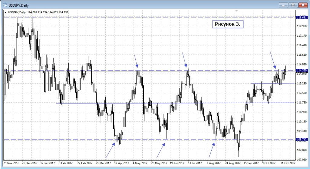 Корреляционно схоже последние недели ведёт себя американская валюта к австралийскому доллару, где ключевой уровень 0.77320 был пройден на волне распродаж, а затем подтверждён в ходе торговой сессии 02/11/2017. Цена так и не смогла закрепиться выше и высоки шансы повидать локальные минимумы в районе 0.76.