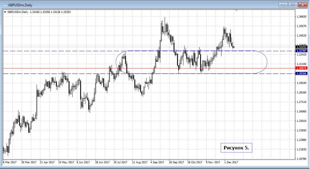 Аналогичная история и по британскому фунту, который после выхода из диапазона день за днём откатывает к верхней границе.
