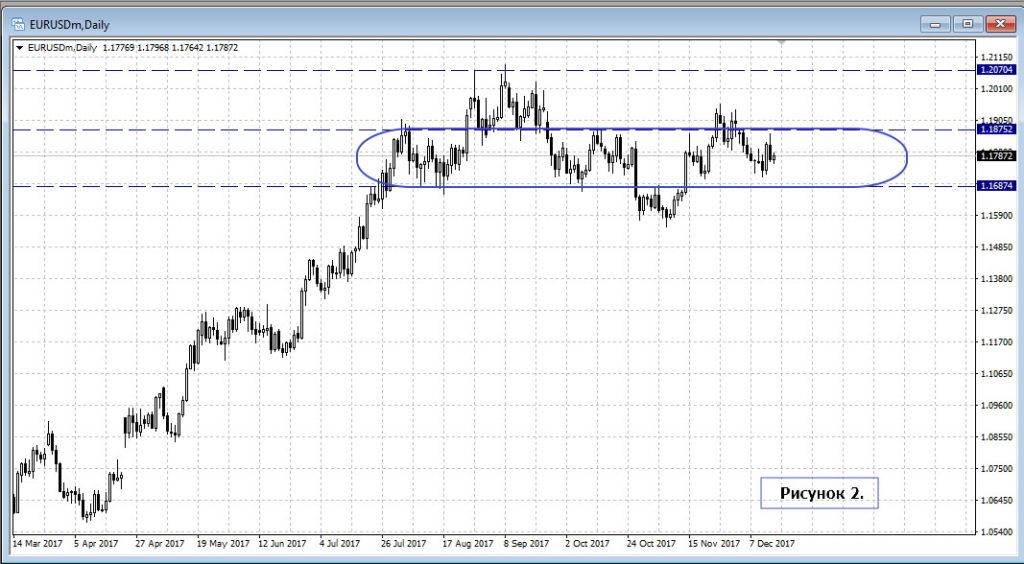С другой стороны, оптимистичные прогнозы роста экономики Еврозоны, но с низкой инфляцией, а значит и продолжающимися монетарными стимулирующими мерами. Технически инструмент остался в рамках диапазона 1.1687-1.1875.
