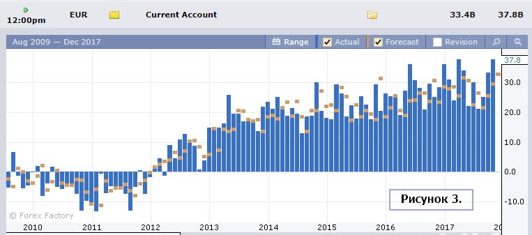 По Еврозоне будет опубликованы данные по текущему счёту. Ожидается уменьшение до 33.4 млрд., но в тенденции с 2013-го года цифры выглядят очень неплохо.