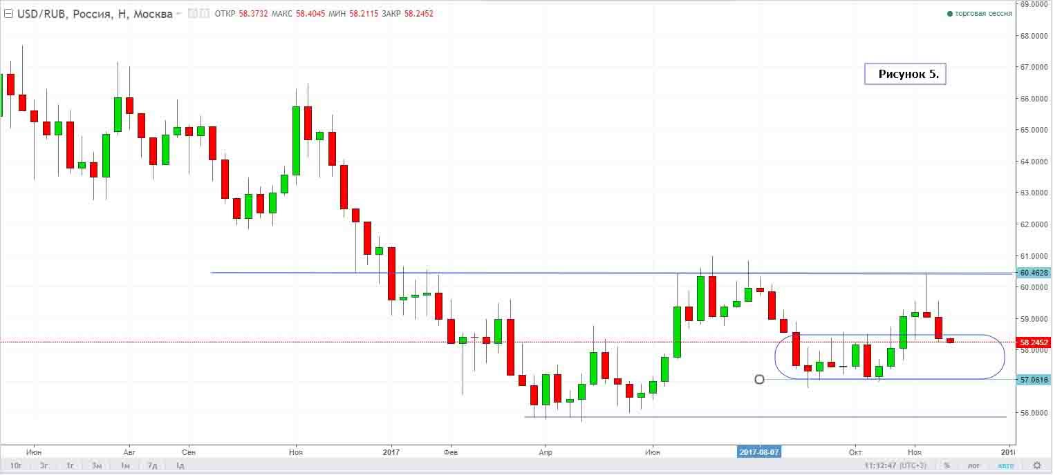 Технически, отработав сопротивление в районе 60.50 к доллару США, российская валюта возвращается в диапазон 57-58.25.
