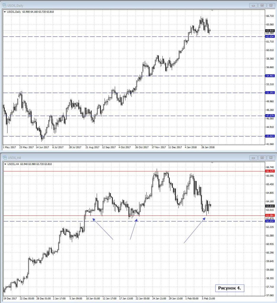Несмотря на мощное коррекционное падение глобальных индексов, нефть удерживает ключевую цену 63, а восстановление позитивного внешнего фона может вполне придать силы на укрепление инструмента ввысь.